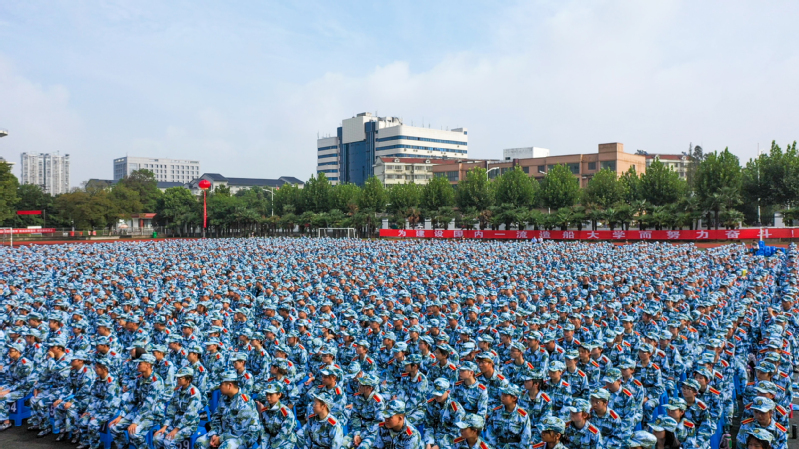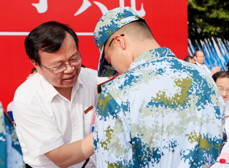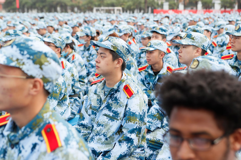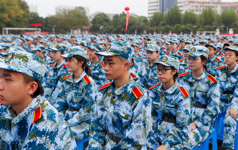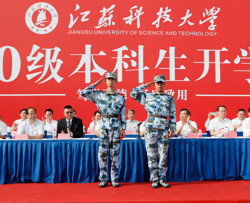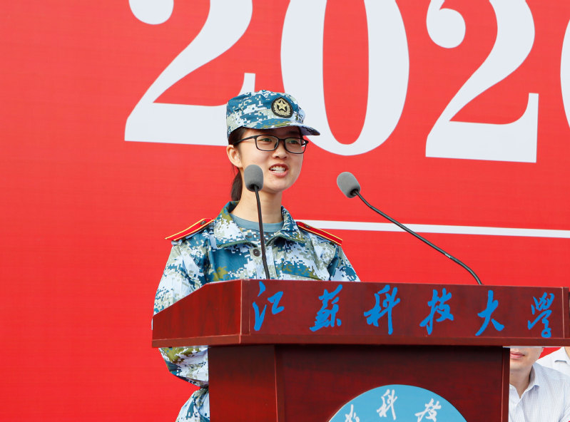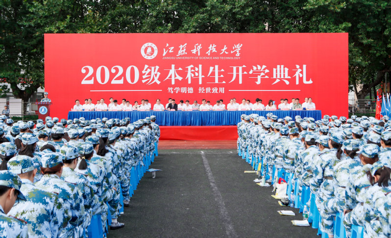 随后,学校举行2020级新生军训动员大会,宣布《2020年江苏科技大学军训旅编成》,副校长姜朋明作军训动员并授军训旗,军训学员代表、计算机类新生李琦发言。2020级新生分15个营67个连,从16日起至30日开展为期15天的军训。