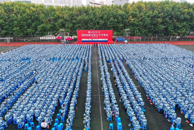 相关部门负责人,各学院院长、书记,教师代表、校友代表以及2020级全体本科生参加开学典礼。