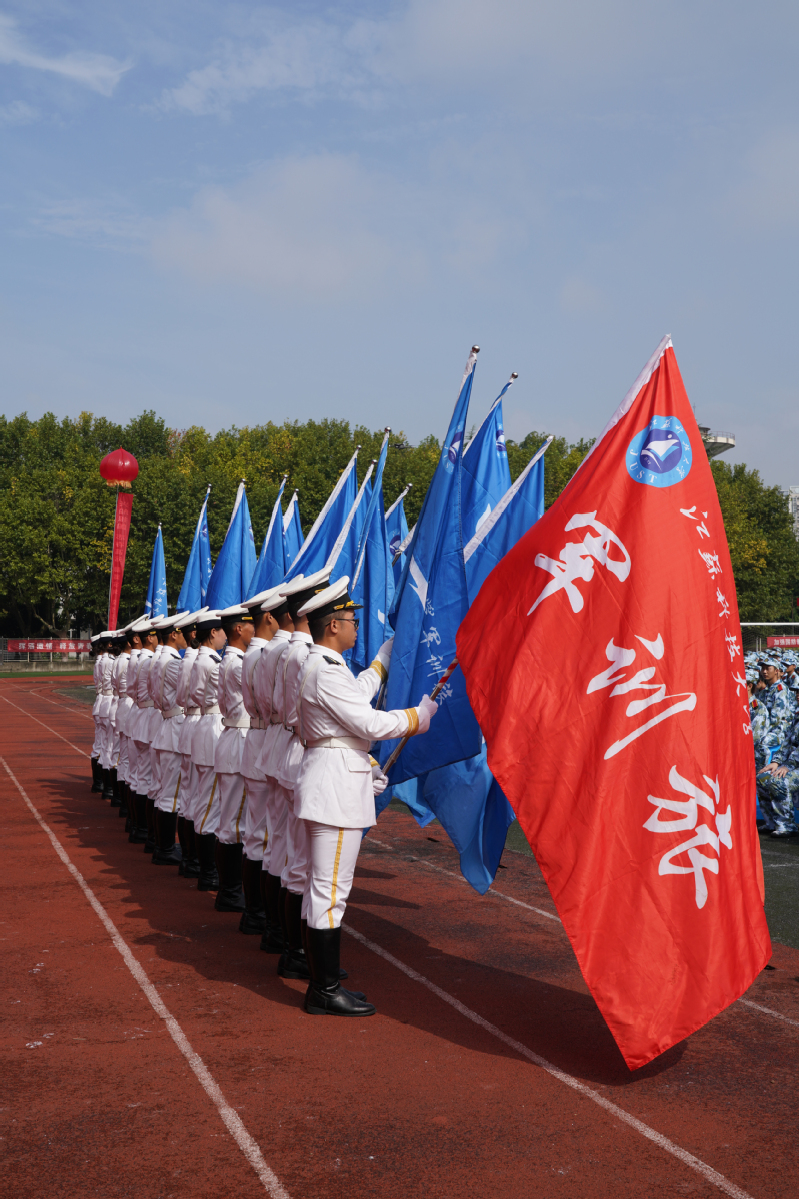 伴随着五星红旗冉冉升起,典礼在梦溪校区运动场庄严的国歌声中开始,全体师生行注目礼。