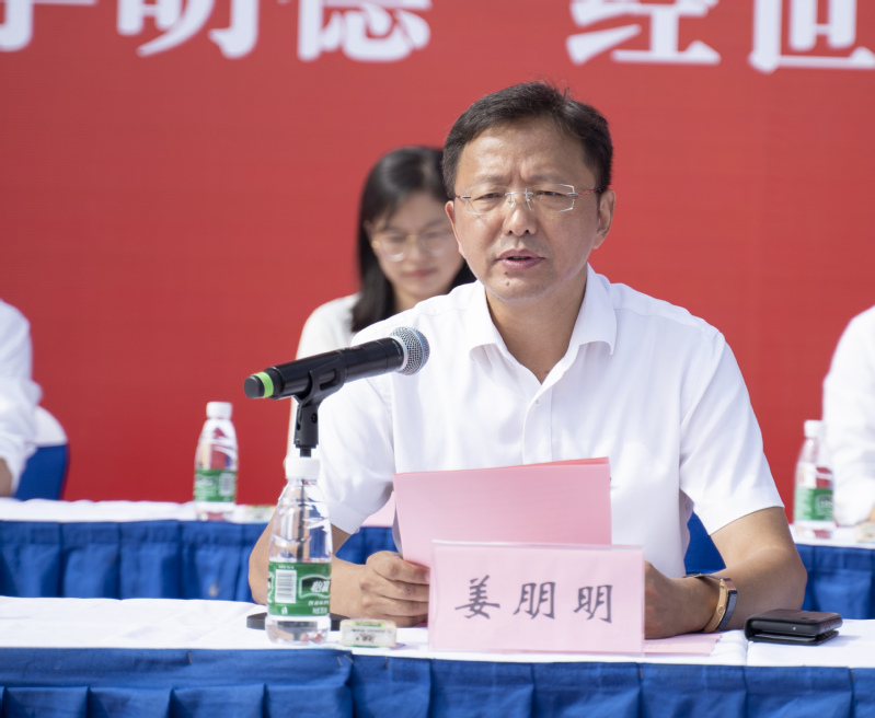 姜朋明副校长代表学校就为什么要军训和如何开展好军训两方面为新生作了动员讲话。他指出,2020年是不平凡的一年,全国人民经历了新冠肺炎疫情的肆虐,目睹了抗洪抢险的惊险。危机面前人民军队冲锋在前,这种精神与力量正是当代大学生所要学习的。军训是每个大学生履行兵役义务的一种基本形式,是高校学生的一门必修课,将“塑形”与“塑魂”相结合,融入爱党、爱国、爱军教育内容,训家国情怀、训战斗精神、训责任担当。姜朋明要求同学们端正态度,严格训练,尊重教官,听从指挥,团结一致,互帮互助。同时,他要求各部门加强组织领导,进一步明确职责分工,既各司其职,又形成合力,高标准做好今年的军训工作。