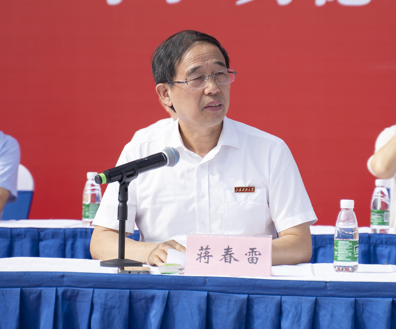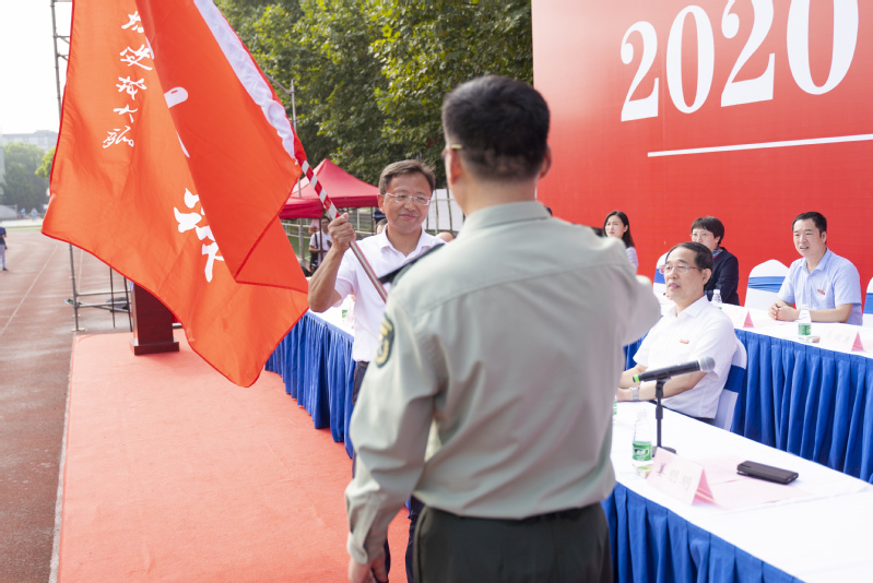 动员讲话前,姜校长向军训旅旅长蒋宏志授军训旅旗,蒋宏志向各营授营旗。