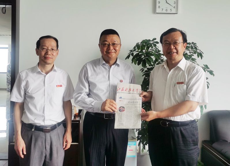 党委书记葛世伦对何江华校友的到来表示热烈欢迎,希望学校与沪东中华造船(集团)有限公司能够进一步加强合作,实现合作共赢。校长周南平介绍了近年来学校学科建设、人才培养和科技创新等方面的情况,希望双方继续深化合作内容,拓展合作领域,并为何江华校友佩戴精美的校友徽章,并赠送印有何江华校友先进事迹的第756期《江苏科技大学报》。会谈中何江华校友对近年来学校发展取得的成绩表示祝贺,并简要介绍沪东中华造船(集团)有限公司在军工、民用两大领域的实业和产业发展情况,祝福母校培养出越来越多的优秀人才,继续为中国船舶行业的发展和区域经济发展贡献力量。双方就科研合作、人才培养和未来研究方向等方面展开深入交流。