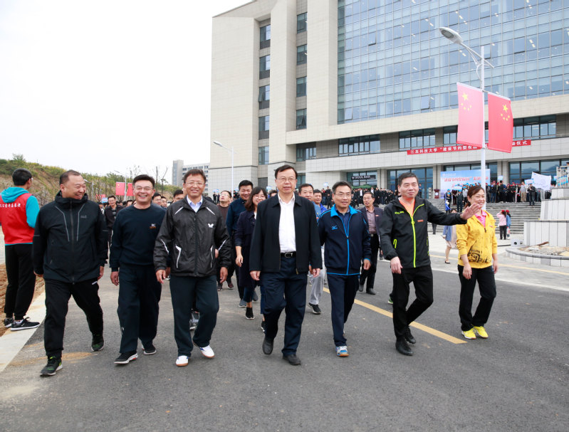 启动仪式后,学校各党政机关、教学科研单位、基层党组织、师生代表组成的18个代表队近1000名师生参加了环湖健步走活动,师生步伐矫健,精神蓬勃,在健步走运动中体味节能减排的美好风尚。