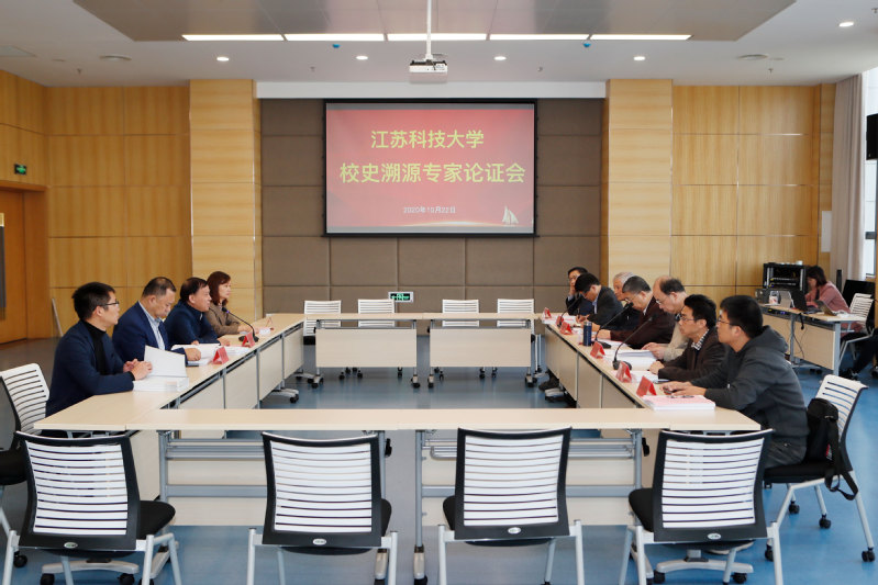 2020 年 10 月 22日,江苏科技大学校史溯源专家论证会在长山校区图书馆104会议室举行,此次会议由学校委托中国高等教育学会校史研究分会组织,来自兰州大学、上海交通大学、苏州大学、上海师范大学、上海理工大学、华东师范大学、浙江大学、同济大学的高校校史研究专家出席。专家组审阅了相关会议材料,参照《江苏科技大学章程》,就学校校史溯源问题进行专题讨论。会议由中国高等教育学会校史研究分会理事长、兰州大学教授张克非主持。校党委书记葛世伦代表学校到会致辞,对专家们亲临学校指导校史溯源工作表示感谢,并介绍了学校发展概况。