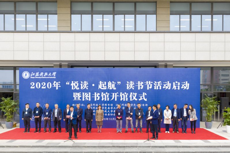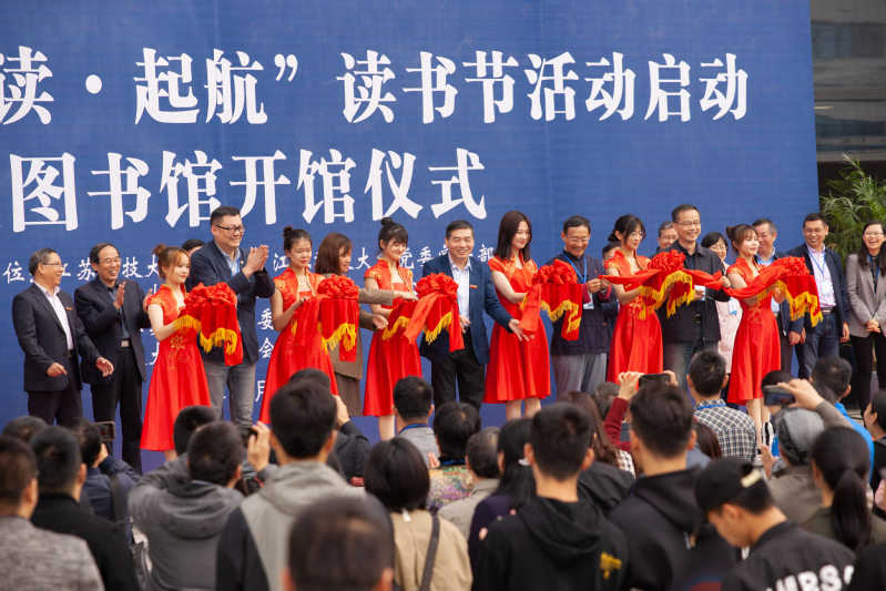 10月26日上午9点,我校在长山校区图书馆举办第四届“悦读·起航”读书节活动启动暨图书馆开馆仪式。来自江苏省高校图书情报工作委员会、周边地区友好单位图书馆的领导、专家、馆长等70余位嘉宾出席仪式。我校党委常委、副校长谈镇,党委常委、宣传部长周春燕,校办、学生处负责人以及图书馆全体员工及相关合作公司代表参加启动仪式。仪式由图书馆馆长刘维亭主持。