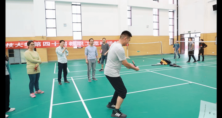 运动会举行了第九套广播操比赛,各学院代表队身着各队统一的服装,精神抖擞,步伐整齐,挥臂、踢腿、转身、弯腰,整齐划一地完成了广播操的每个动作,将青春的活力挥洒得淋漓尽致,赢得了现场观众和评委老师的一致好评。