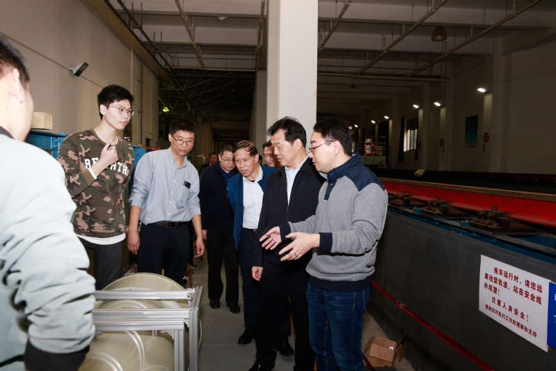 李强副厅长一行在座谈会后参观了梦溪校区船模拖曳水池、风浪流综合水池、船舶先进制造技术仿真实验室,学校鲜明的办学特色给李强副厅长一行留下了深刻的印象。