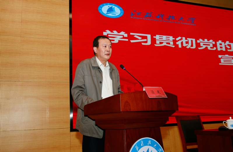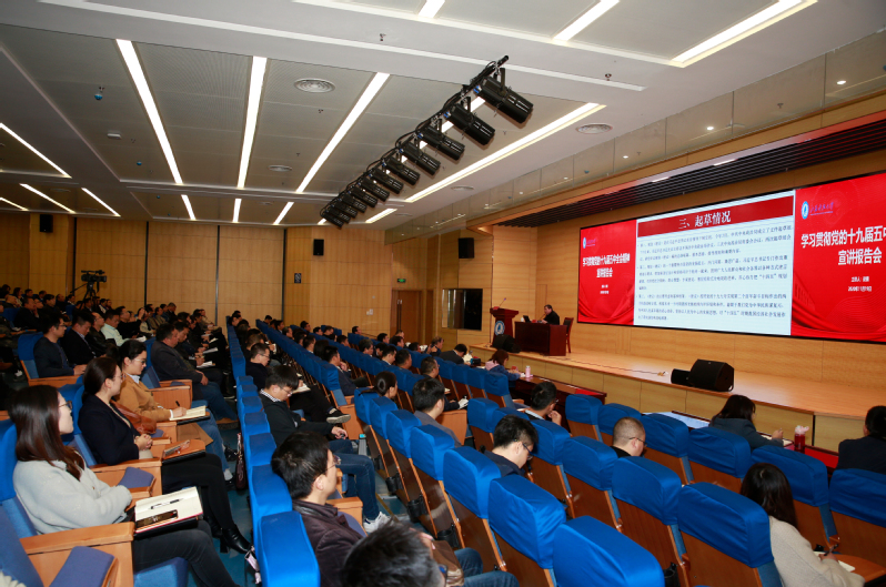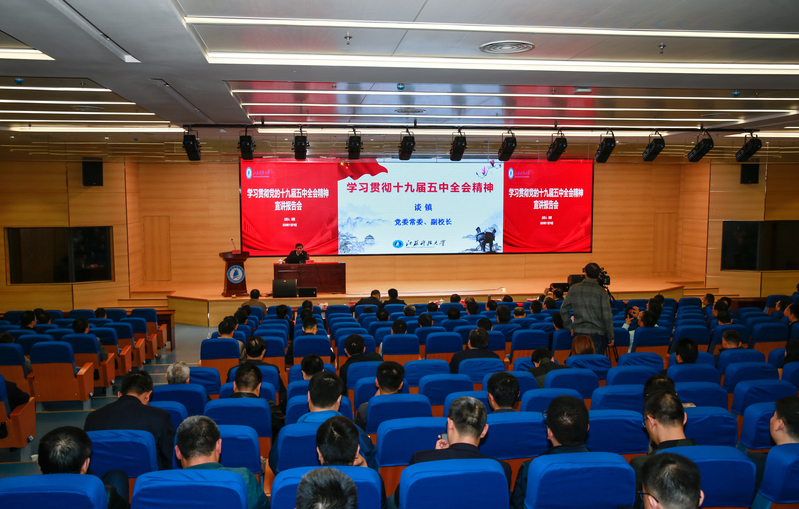 党的十九届五中全会于2020年10月26至29日在北京胜利召开,为了深入学习贯彻全会精神, 11月19日上午,江苏科技大学学习贯彻党的十九届五中全会精神首场宣讲报告会在图书馆105报告厅举行。