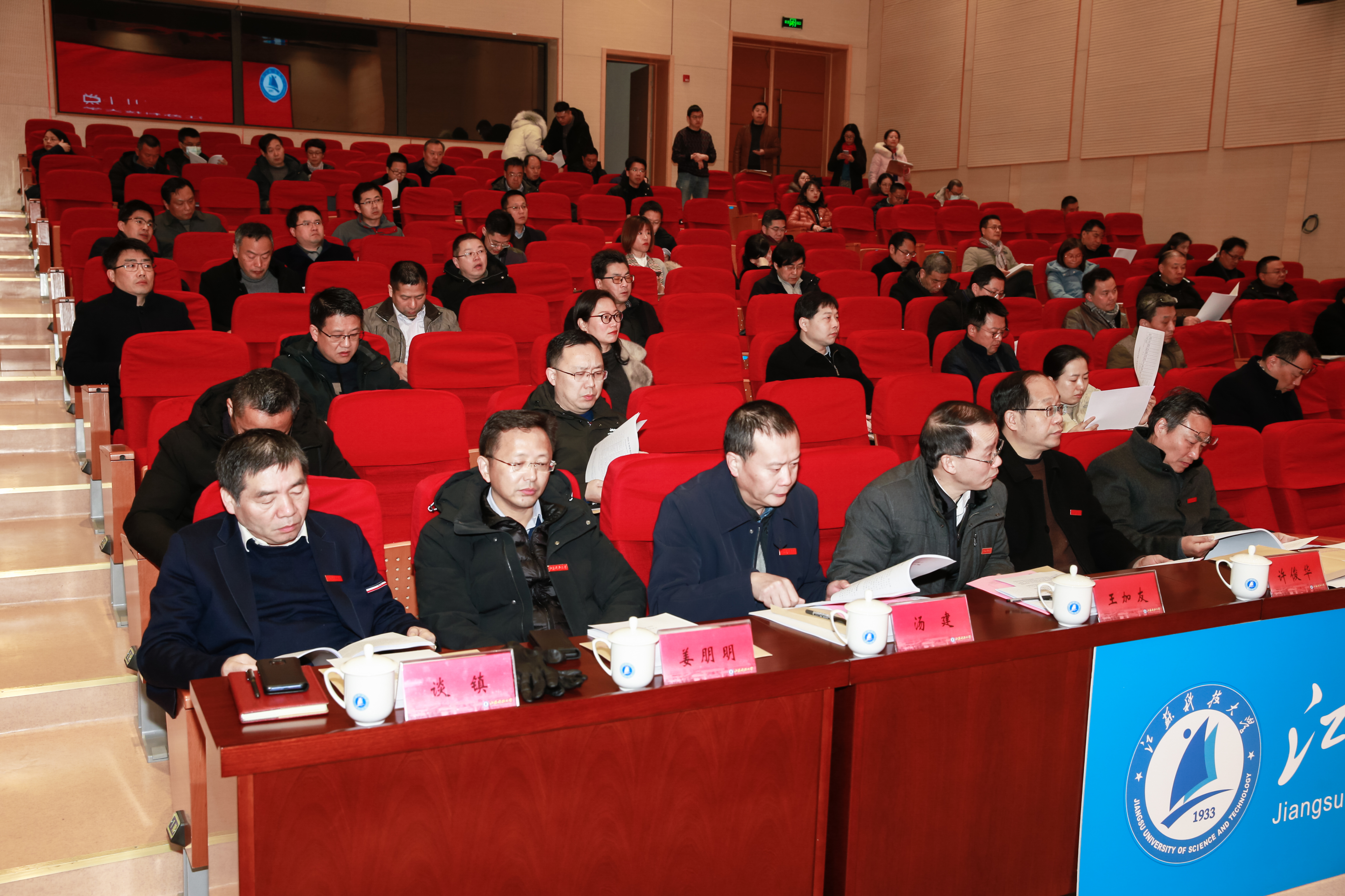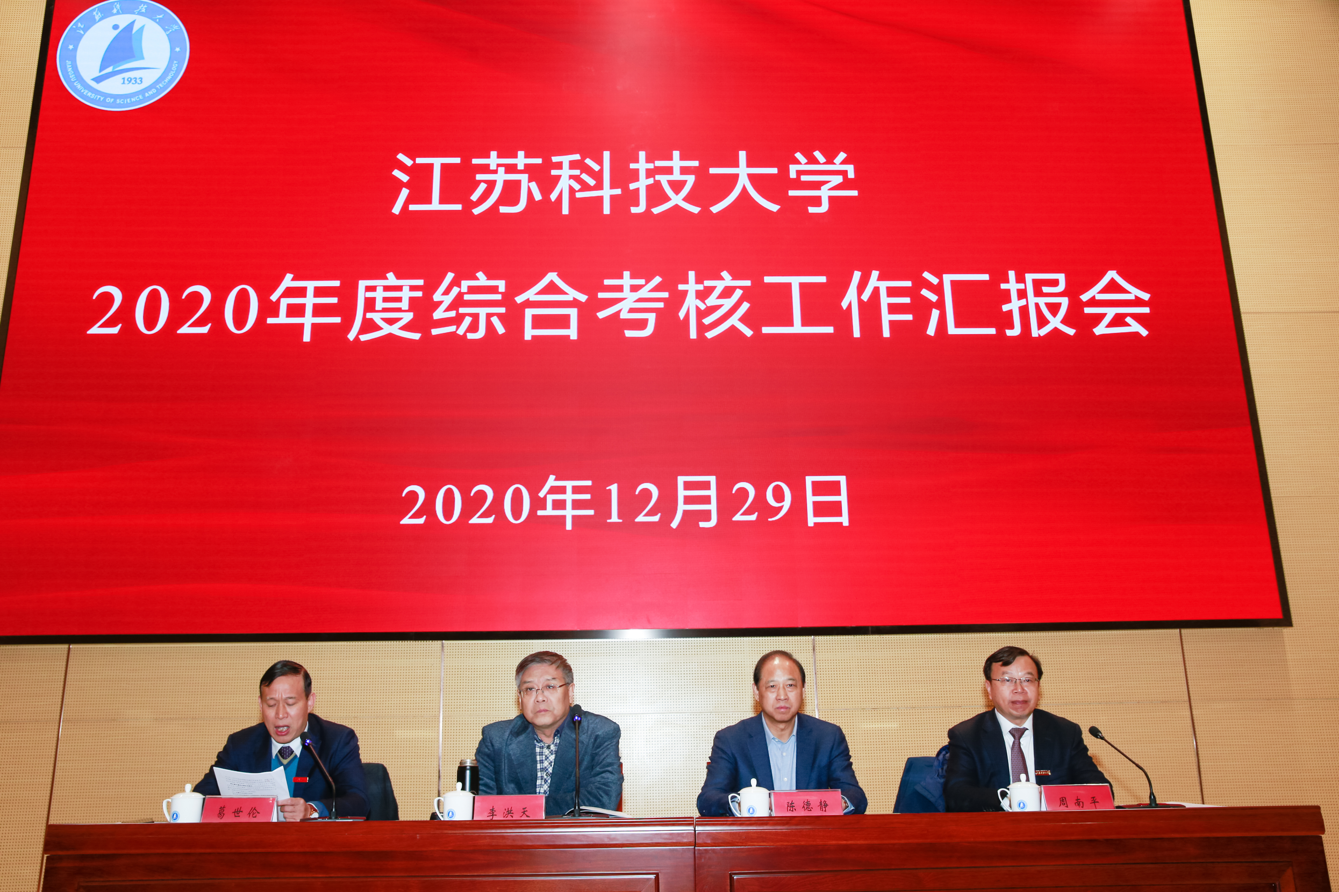 按照全省2020年度综合考核工作统一部署,12月29日,江苏科技大学在长山校区行政楼100号报告厅召开综合考核工作汇报会。省第八综合考核组组长、江苏第二师范学院原党委书记李洪天,副组长、南京工程学院原党委副书记、副院长陈德静,以及由省委组织部、省教育厅、省委教育工委等组成的综合考核组全体成员出席会议。校党委书记葛世伦作了校党委领导班子述职报告、选人用人工作报告和个人述职报告,校党委副书记、校长周南平作了校行政领导班子述职报告和个人述职报告。校领导班子,校党委委员、纪委委员,全体中层正职干部,区级以上党代表、人大代表、政协委员,民主党派负责人,高级职称人员和教职工代表等参加会议。校党委书记葛世伦主持会议。