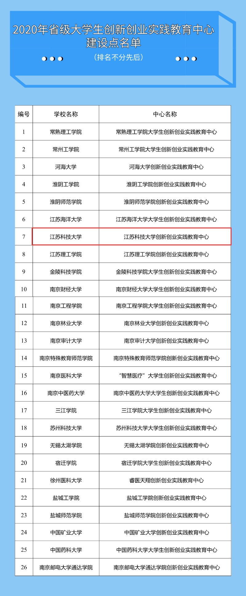 近日,江苏省教育厅公布了2020年省级大学生创新创业实践教育中心遴选结果(苏教办高函〔2020〕27号),我校申报的“江苏科技大学创新创业实践教育中心”成功入选。