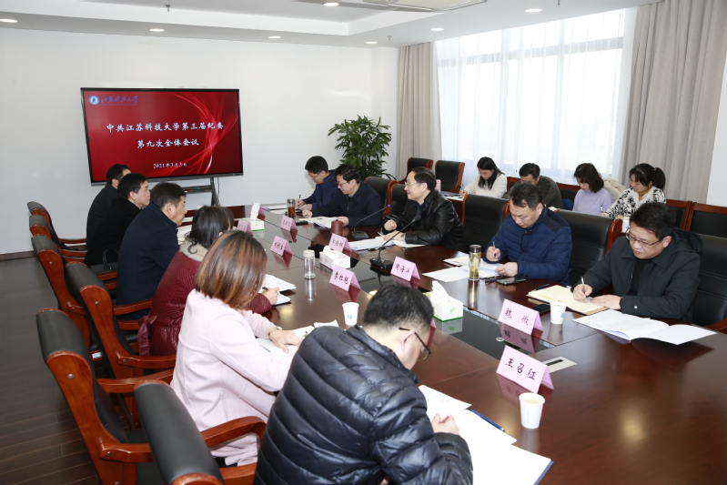 3月3日上午,中共江苏科技大学第三届纪委第九次全体会议在新校区行政楼八楼会议室召开,学习传达了十九届中央纪委五次全会、十三届省纪委六次全会和七届市纪委六次全会精神,审议了中共江苏科技大学纪委(派驻监察专员办)2021年工作要点。校党委常委、纪委书记、派驻监察专员郑培钢主持会议。