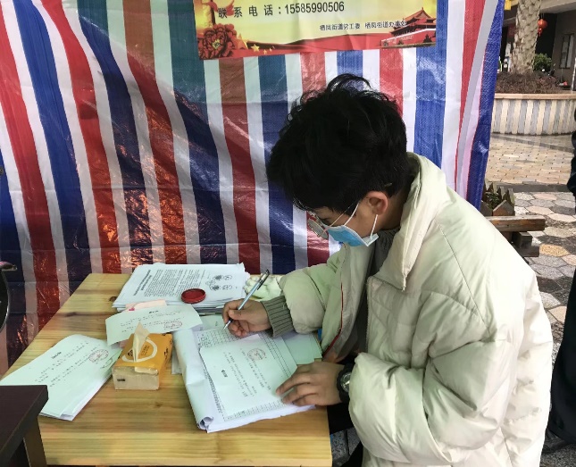 图为陆徐晨同学参与家乡苏州市乡村防疫工作