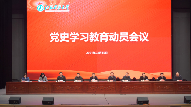 以党史铭记初心之魂,用党史激发奋进之力。3月15日,江苏科技大学采取“主会场+视频分会场”方式召开党史学习教育动员大会暨党委理论学习中心组学习扩大会,深入学习贯彻习近平总书记在党史学习教育动员大会上的重要讲话精神,认真落实党中央和省委决策部署,学习《江苏科技大学党史学习教育实施方案》,在全校上下迅速兴起党史学习教育的热潮。校党委书记葛世伦作党史学习教育动员讲话,校党委副书记、校长周南平主持大会并就开展党史学习教育提出要求。