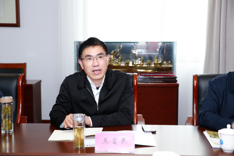 周南平校长对焦富民校长一行的到来表示热烈欢迎。周校长向客人介绍了学校的基本情况,并从船舶、海洋、蚕桑三大特色、产教融合等方面重点介绍了学校的办学特色。周校长表示,学校将坚持走与行业区域融合发展之路,奋力进位争先,推动学校高质量发展。景旭文副书记介绍了学校教师岗位设置与聘用、奖励性绩效工资、博士和高层次人才引进等政策。