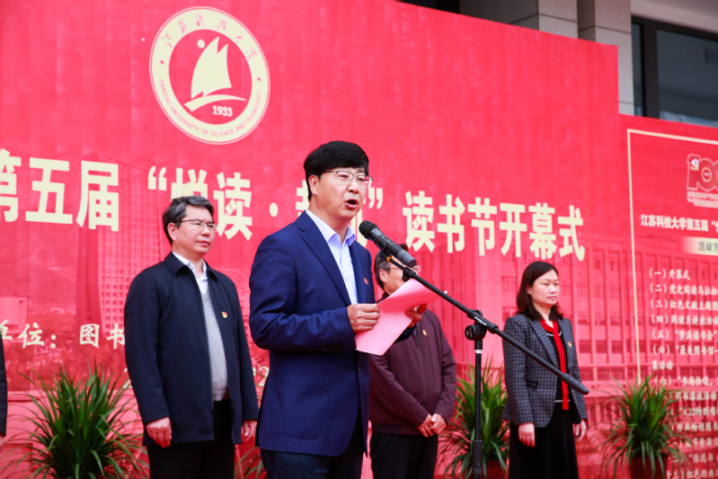 为庆祝中国共产党成立100周年,引领师生诵读百年党史,传承红色经典,4月22日下午,在第26个“世界读书日”到来之际,江苏科技大学第五届“悦读·起航”读书节开幕式暨党史阅读马拉松挑战赛启动仪式在长山校区图书馆南门隆重举行。校党委副书记、副校长景旭文,校党委常委、宣传部长周春燕出席开幕式。学生处、工会、团委等职能部门负责人,图书馆全体馆员、党史阅读马拉松参赛选手、读者协会会员以及师生代表一同参加了开幕式。开幕式由图书馆党总支书记王明强主持。