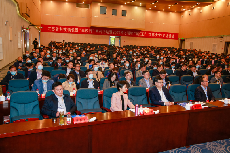 由江苏省人才办和江苏省科技厅主办的科技镇长团“高校行”系列活动暨2021招才引智“镇江日”专场活动,4月25日上午在江苏大学小礼堂举行,来自全省106个科技团成员代表及120家省内企业代表参加活动。省委组织部、省科技厅及镇江市委市政府领导出席。我校党委书记葛世伦出席并共同启动科技镇长团“高校行”系列活动,副校长王加友在会上介绍了学校发展情况。