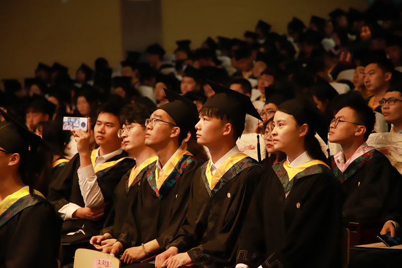 周南平校长指出,江科大有用生命高扬师者尊严的教师楷模景荣春老师,还有赤诚一片为军工的时代先锋张进校友。他们用一生坚守明德向善之心,以个人之力改变、改善着整个社会。他希望大家试着接受世事的残缺,试着放下一些愤世嫉俗的抱怨,用自身的热量温暖这个世界,永远跟正直善良的人站在一边,以自信、果敢、踏实、勤奋去寻得更高、更远的人生天地。数载芳华,依依不舍。周南平说:“再过8天,我们将迎来中国共产党成立100周年的喜庆之日。新时代是一个英雄辈出的时代,一代人有一代人的长征,一代人有一代人的担当。”他祝愿同学们不负青春、不负韶华、不负时代,“江科大永远与你们在一起”。