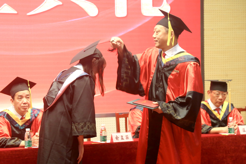 俞孟蕻副校长为研究生、优秀本科毕业生颁授毕业证书和学位证书。出席典礼的导师们共同为全体毕业生授学位。
