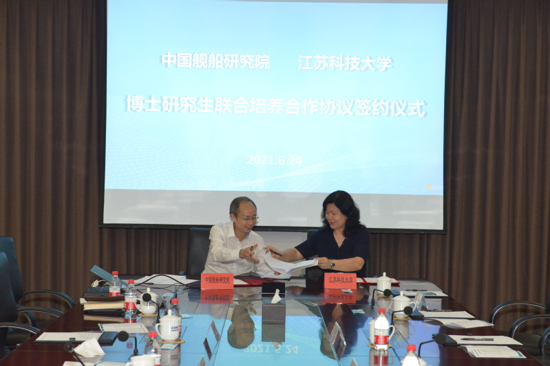 6月24日,江苏科技大学与中国舰船研究院在京举行博士研究生联合培养合作协议签约仪式。校党委书记葛世伦,中国舰船研究院院长、党委副书记刘郑国出席签约仪式,校党委常委、副校长嵇春艳,中国舰船研究院党委委员、副院长张显满分别代表双方签约。