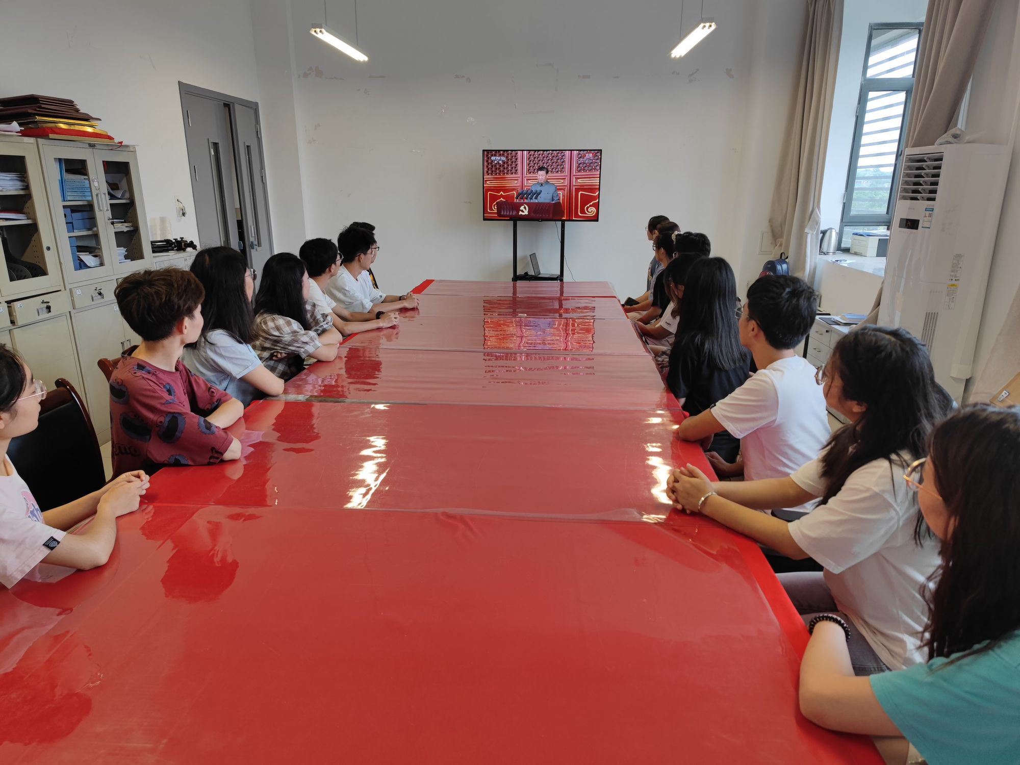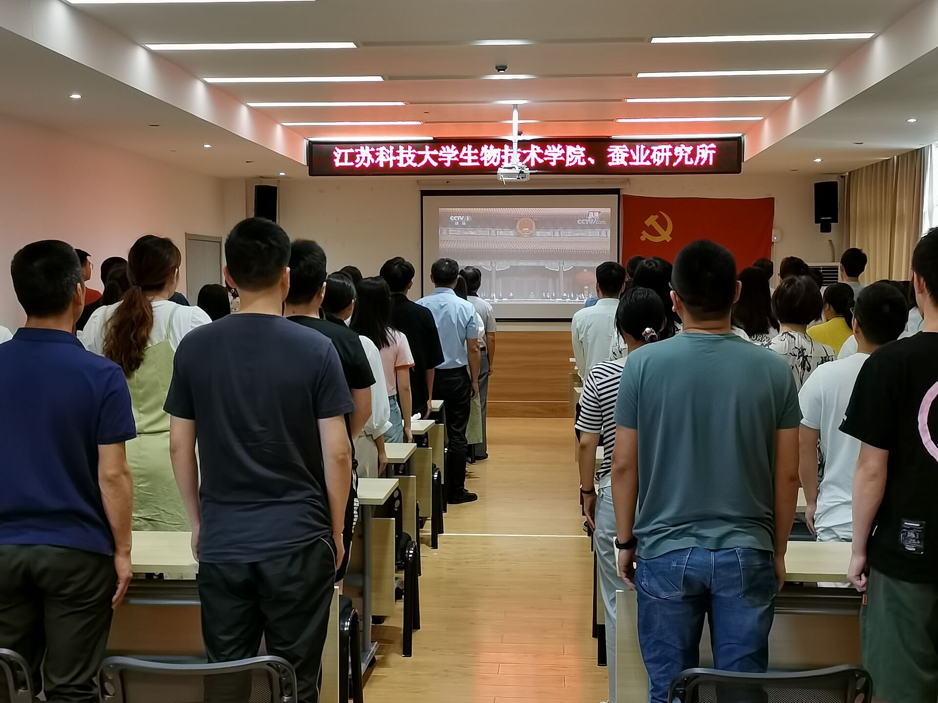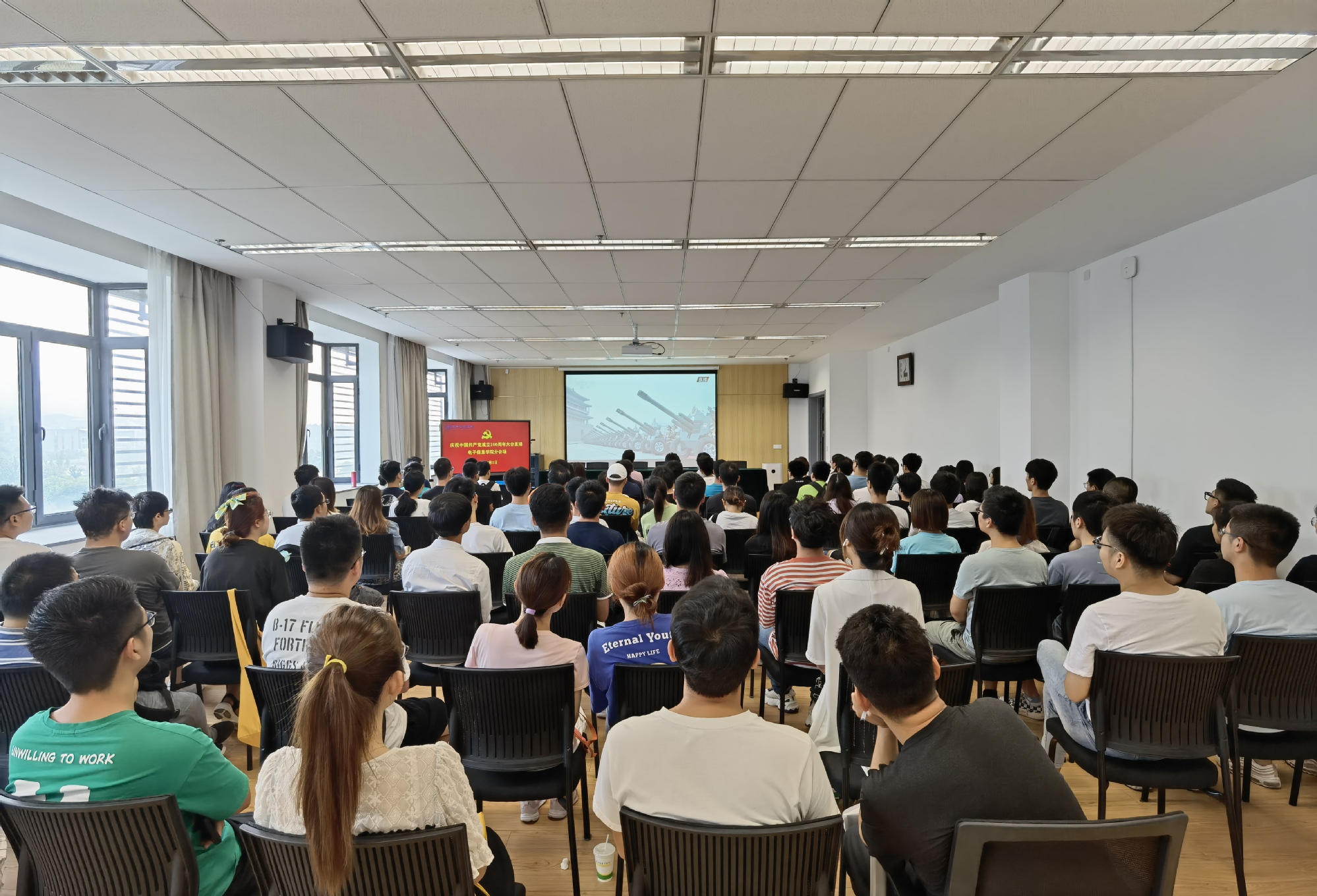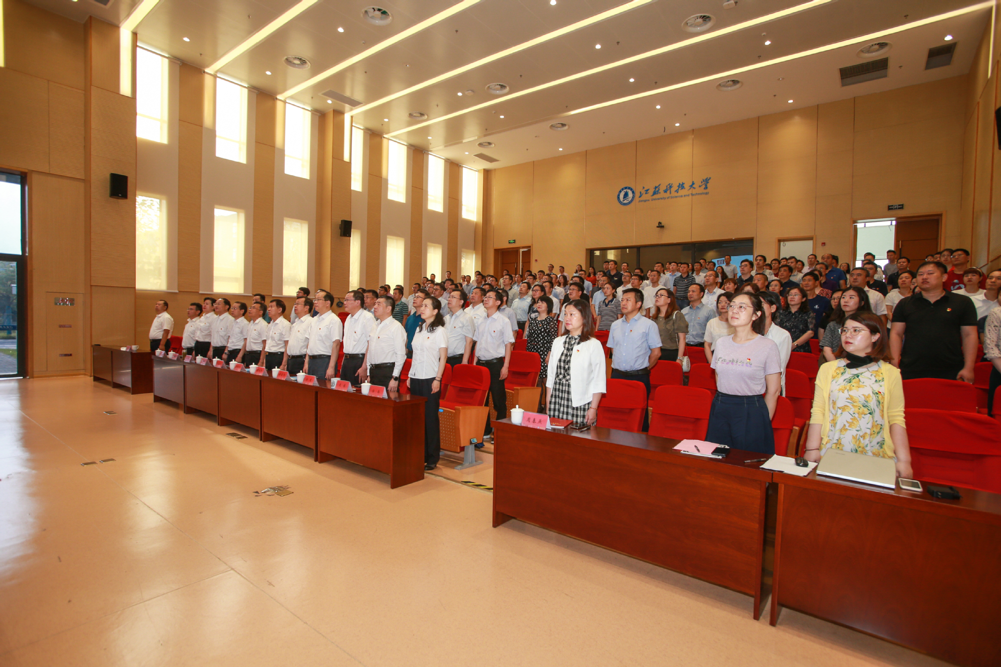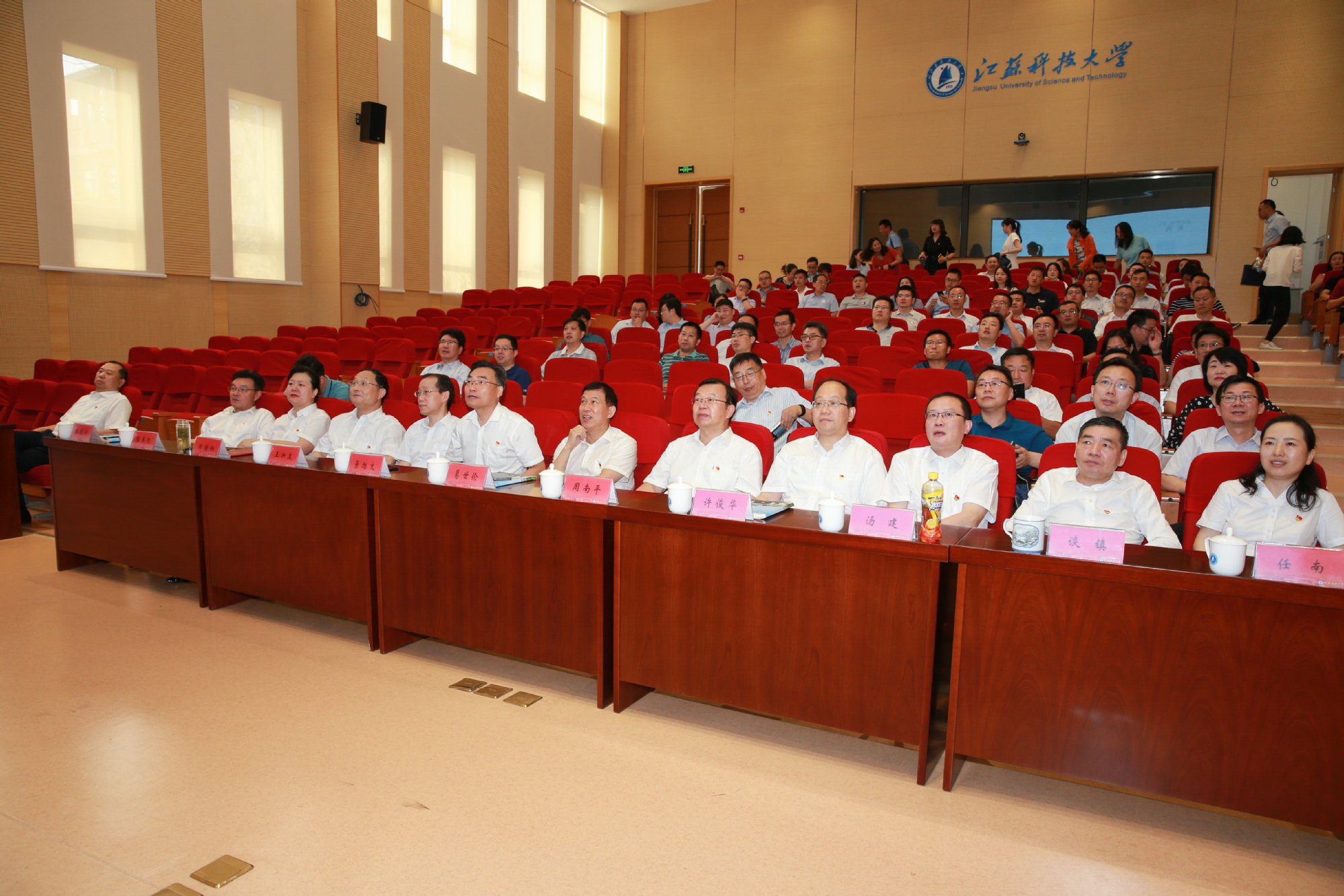 江苏科技大学积极组织广大师生员工集中观看大会直播。校领导葛世伦、周南平、景旭文、许俊华、王加友、汤建、郑培钢、谈镇、嵇春艳、任南,党委常委李恒川、周春燕、刘新波在长山校区行政楼100号报告厅观看直播。党委常委、副校长俞孟蕻在张家港校区文心会堂收看直播。各二级党组织分别组织师生员工集中观看大会直播。