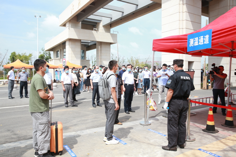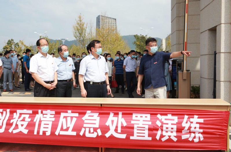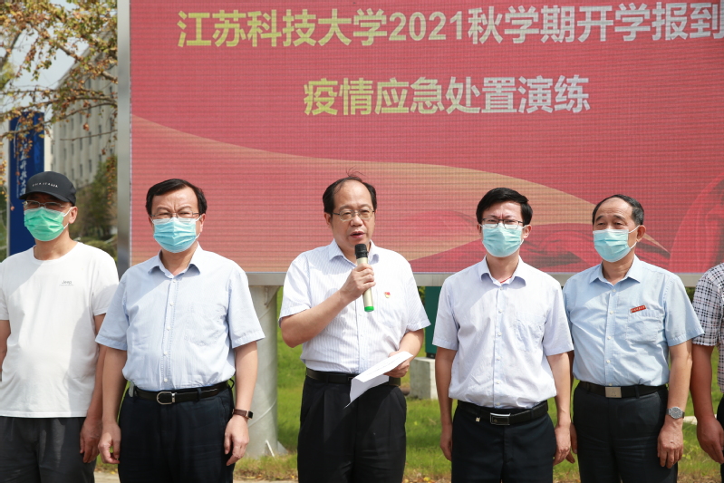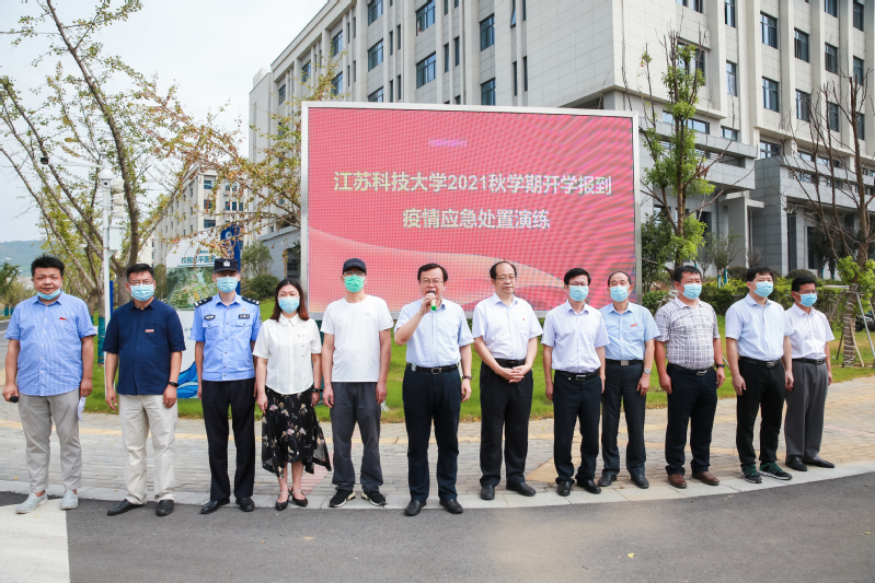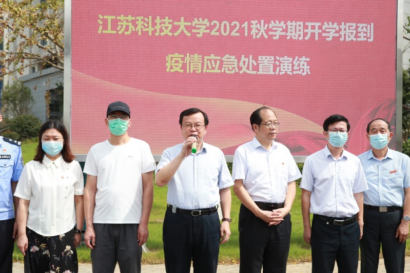 9月14日上午,江苏科技大学在长山校区开展2021年秋学期开学报到疫情应急处置演练。校长周南平宣布演练正式开始。校党委副书记许俊华,党委常委、宣传部长周春燕,相关职能部门以及各学院领导观摩演练,镇江市教育局、卫生监督所、派出所等有关人员现场指导,学生处副处长徐晶主持演练。