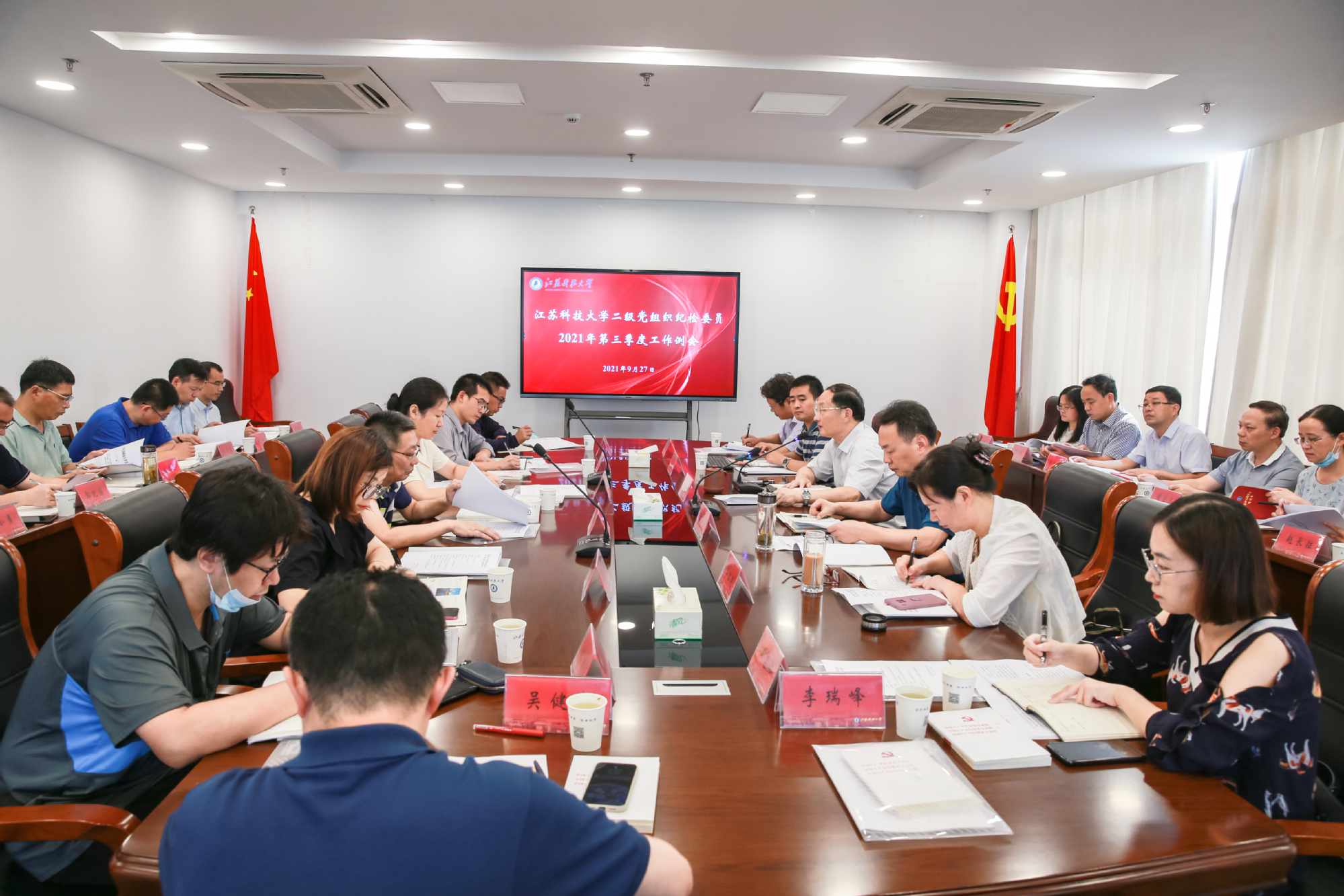 会议传达学习了习近平总书记在中央党校(国家行政学院)中青年干部培训班开班式上的重要讲话,深入解读了《中共江苏科技大学委员会运用监督执纪“第一种形态”实施细则(试行)》。能源与动力学院、经济管理学院、人文社科学院、张家港校区、资产经营公司等五个单位纪检委员代表,分别就本单位制度体系构建、廉政风险点防控、师德师风建设、回应师生关切、廉洁文化教育等党风廉政建设相关工作举措进行交流发言。大家纷纷表示,要不断提高政治站位,切实履行岗位职责,坚持学思悟践,主动担当作为,勇于发现问题,勤于分析问题,善于解决问题,做“立德树人”的忠诚卫士。