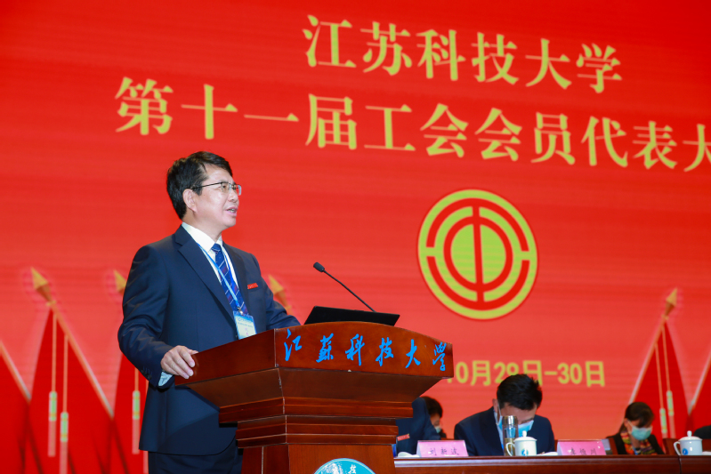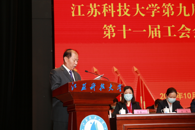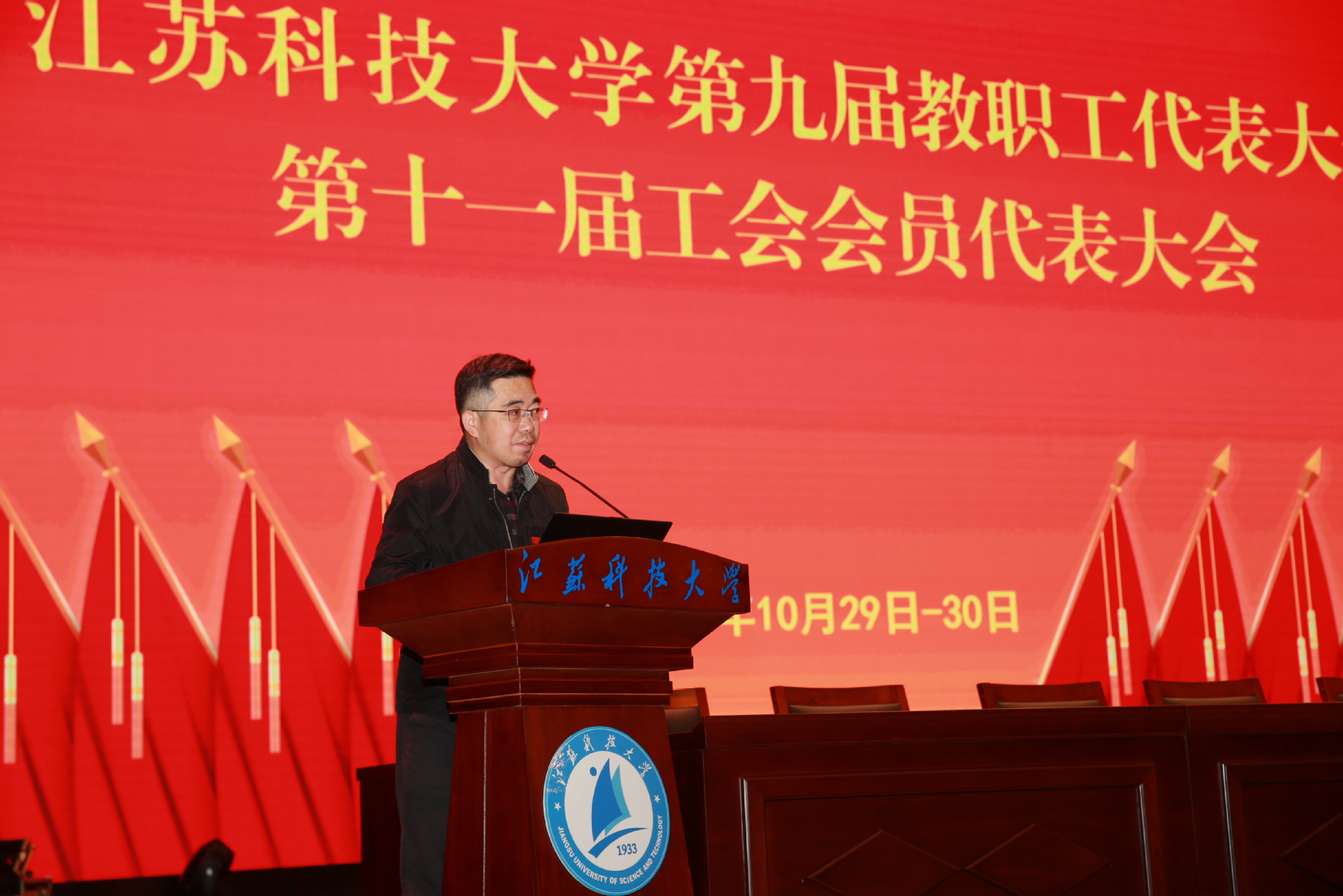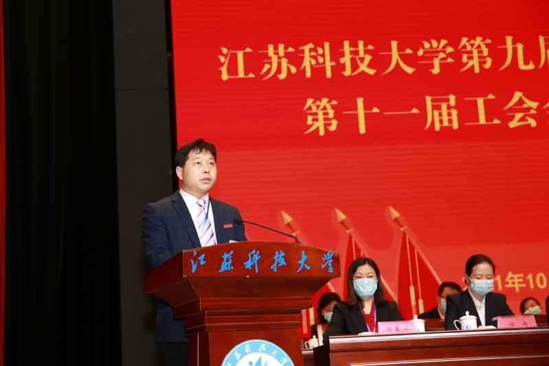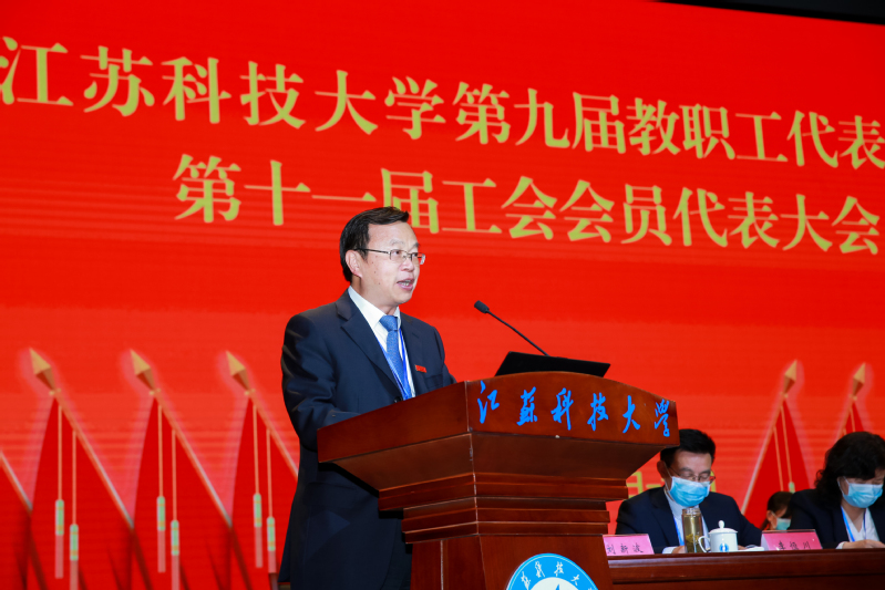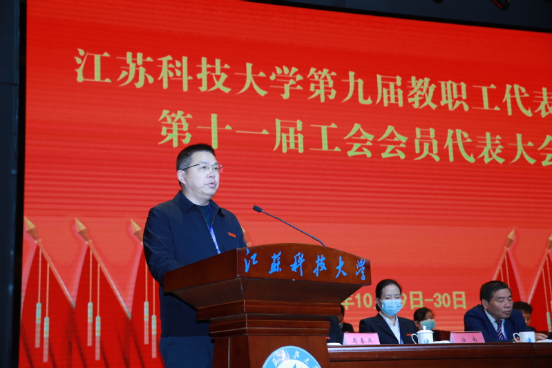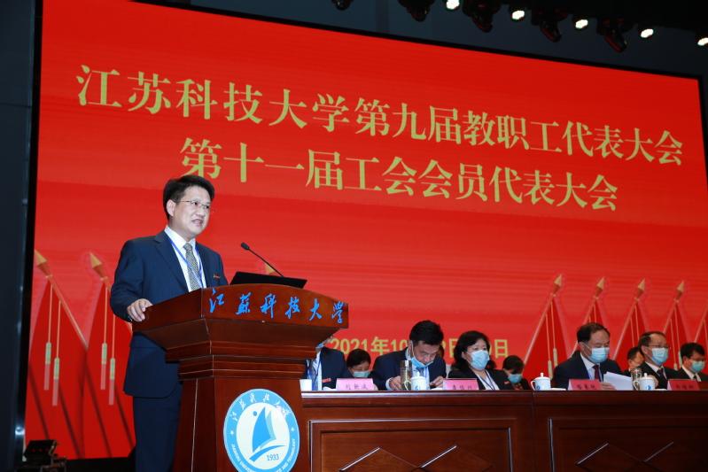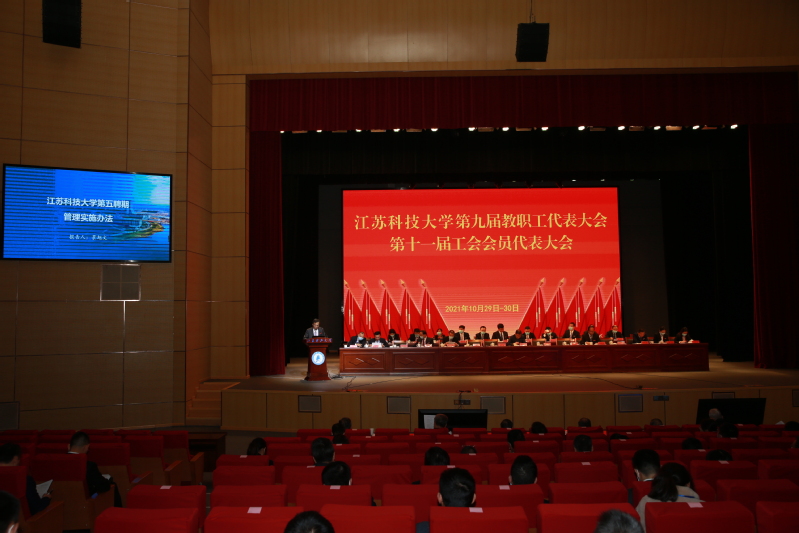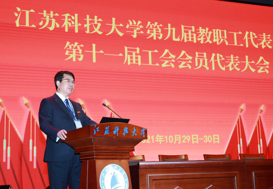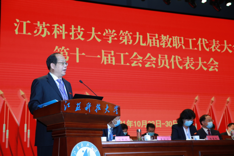 10月29日至30日,江苏科技大学第九届教职工代表大会、第十一届工会会员代表大会在长山校区船苑剧场隆重召开。江苏省教育科技工会二级调研员孙焱,镇江市总工会党组书记、副主席刘正泰,镇江市总工会基层工作部部长陈玉松,镇江市教育工会主席黄勇应邀出席大会。校领导葛世伦、周南平、景旭文、许俊华、王加友、汤建、俞孟蕻、郑培钢、谈镇、嵇春艳、任南,校党委常委李恒川、周春燕、刘新波及全体正式代表、特邀代表、列席人员260余人参加会议。