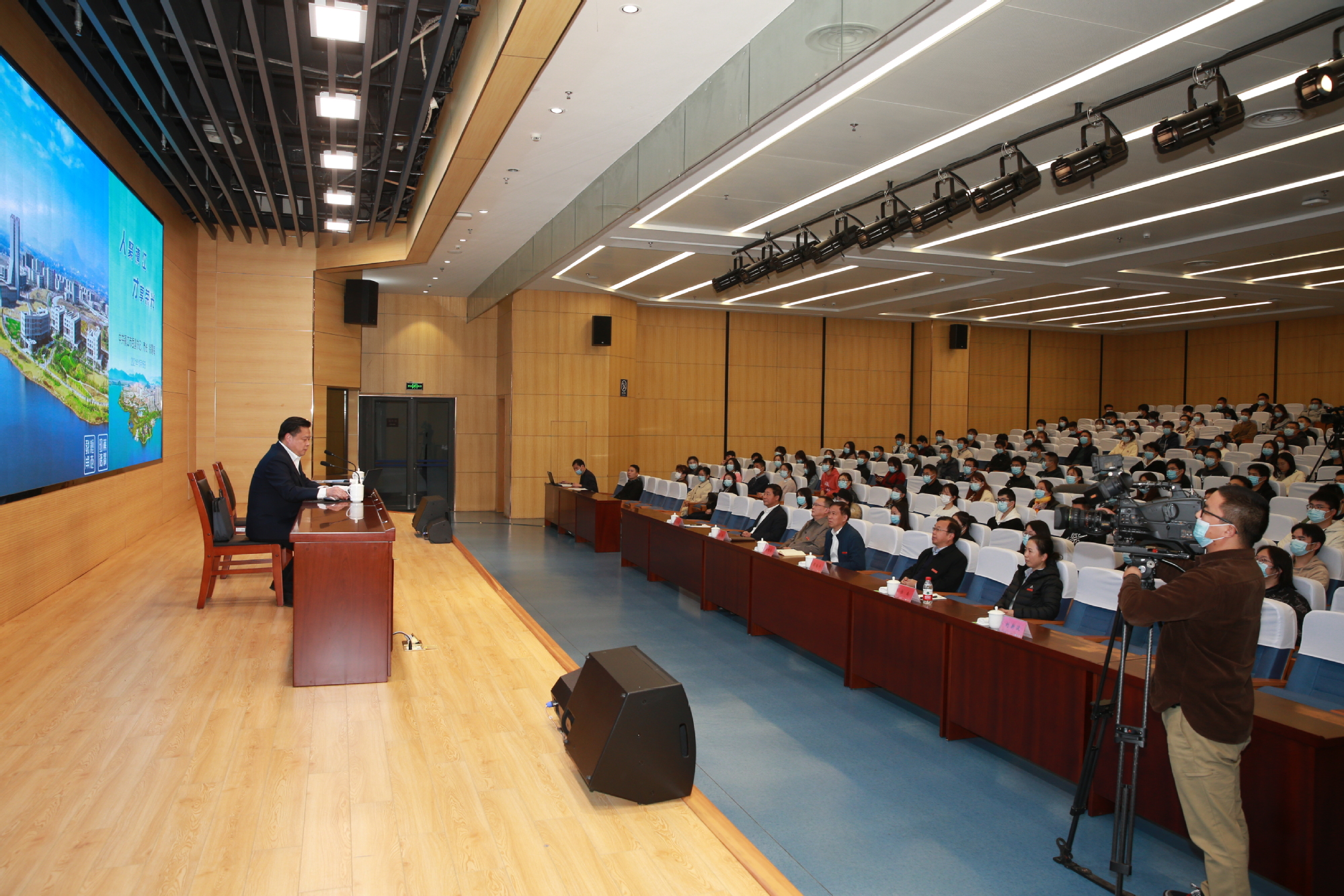 “大家在镇江度过了美好的大学时光,许多同学已经在为去向何处开始筹划。在此,我代表镇江市委、市政府向你们发出诚挚邀约:留下来,留在镇江,和镇江一道燃放青春、成就梦想。”11月16日下午,镇江市委副书记、市长徐曙海应邀在学校长山校区图书馆报告厅作《人聚镇江 才享荣光》报告。校党委书记葛世伦主持报告会,党委副书记、校长周南平,副校长汤建、任南,市政府秘书长马国进,校党委常委、统战部长刘新波出席报告会,相关职能部门负责人、各学院分管学生工作副书记、本科生及研究生代表现场听取报告。各学院设视频分会场, 4000余师生参加此次报告会。