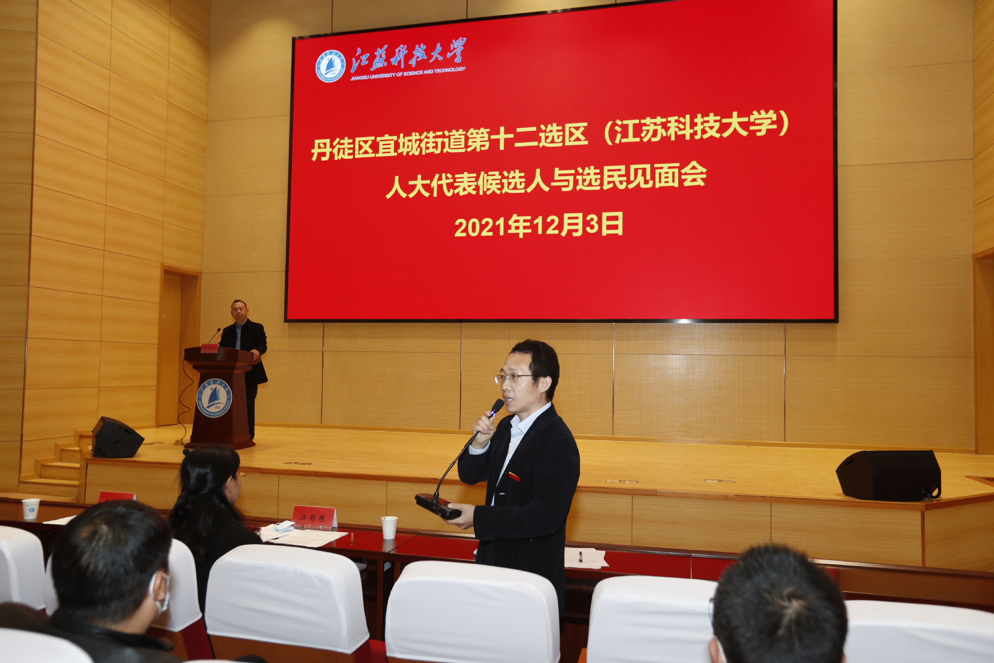 “如果您当选人大代表,您将如何履行好代表职责?”“如果您当选人大代表,您将如何为学校发展更好地发挥作用?”……12月3日下午,学校丹徒区宜城街道第十一选区、第十二选区,京口区梦溪校区选区分别在图书馆B105报告厅、行政楼100号报告厅、梦溪校区演讲厅同时举行正式代表候选人与选民见面会。