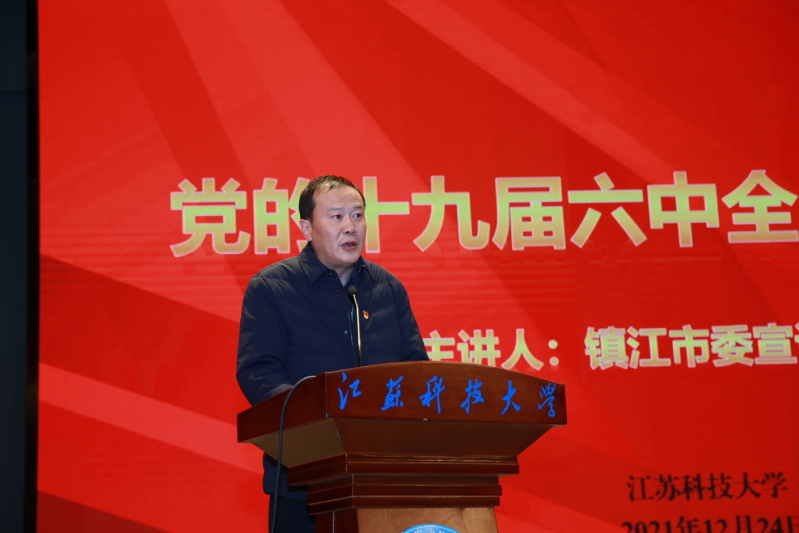 为深入学习领会和贯彻落实党的十九届六中全会精神,12月24日,江苏科技大学举行学习贯彻党的十九届六中全会精神首场宣讲报告会。镇江市委宣讲团成员、镇江市高等专科学校校长丁钢教授应邀来校为广大师生作主题宣讲。