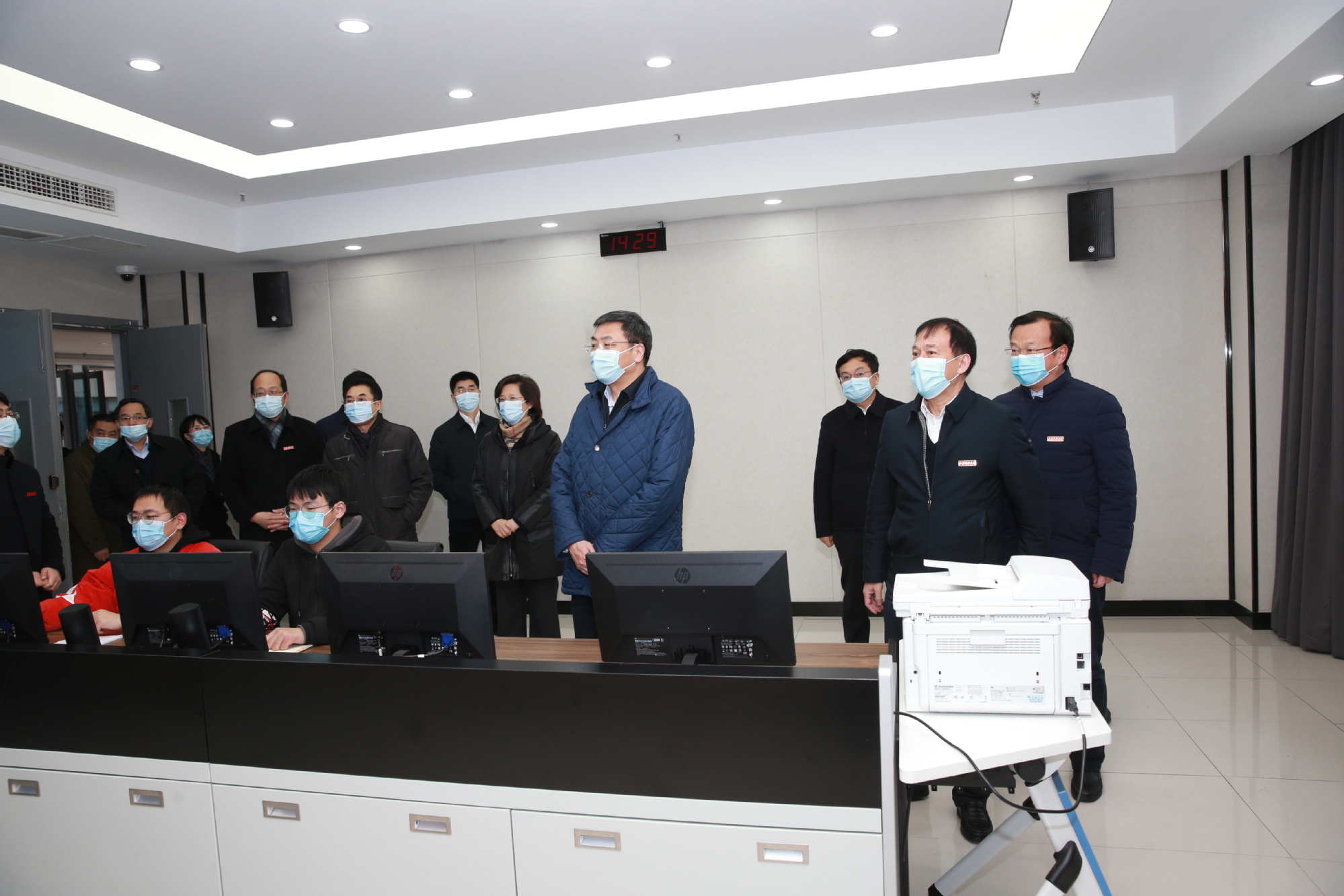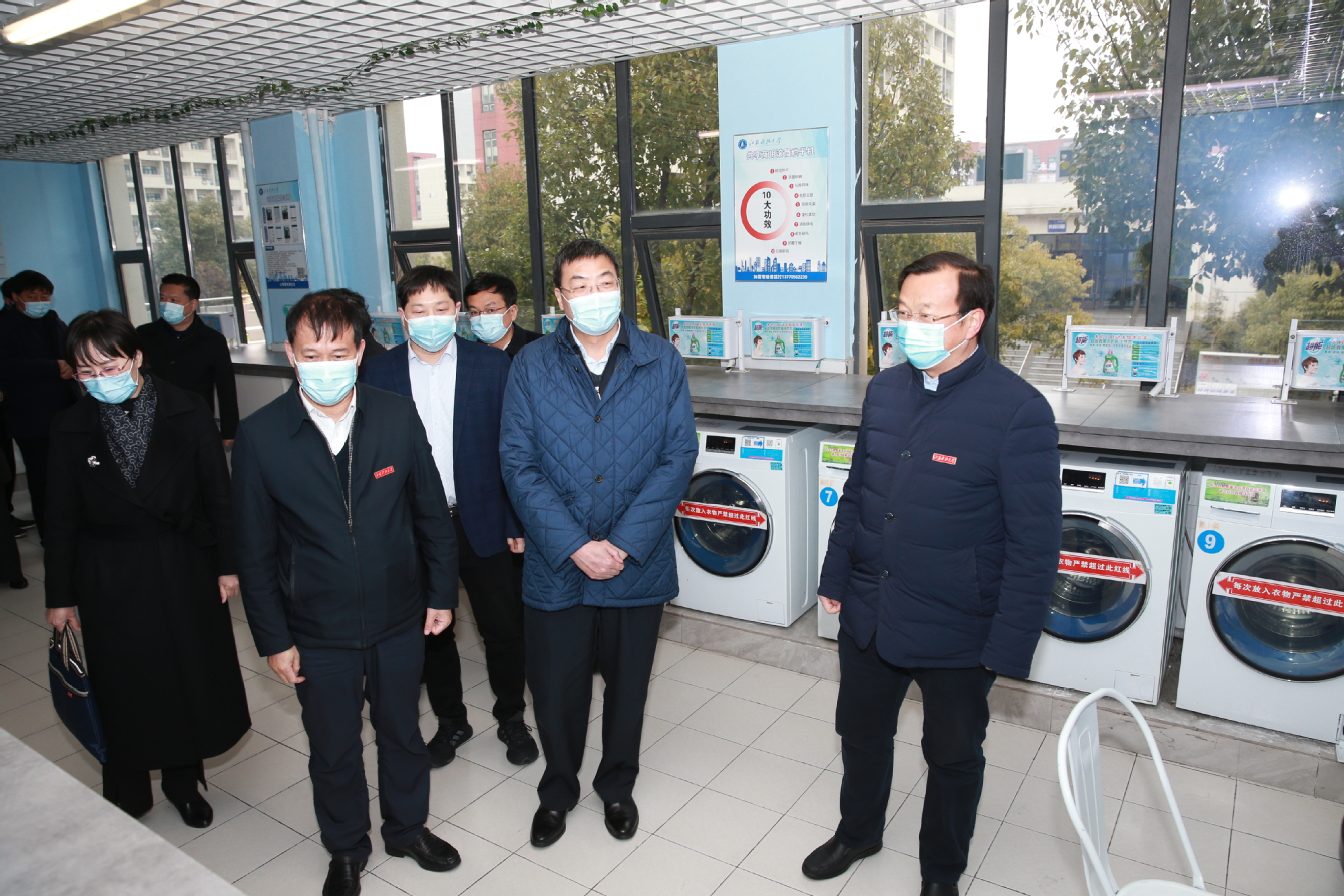 马欣一行先后参观了文理大楼监控中心、智慧教室、西苑食堂、学生公寓、医学观察区、军工展览馆等场所,听取了相关工作汇报。详细了解常态化疫情防控工作方案实施、校园安全措施落实、学生返校准备工作、线上教学等情况。在智慧教室,他仔细询问线上教学情况,要求强化线上教学规范和教学效果,创新教学方法以提高线上学习效率;在学生公寓,认真检查体温检测、消毒消杀、人员登记等防控环节,要求学生落实好“日报告”“零报告”,坚持每天进行健康监测;在西苑食堂,强调要加强食堂工作人员防疫管理,加快检测、消毒速度,更多采取网上预约、统一配餐的方式就餐。在医学观察区,仔细查看室内外设施、房间床位数量等,强调要明确工作职责,制订周密工作方案,规范处置流程。