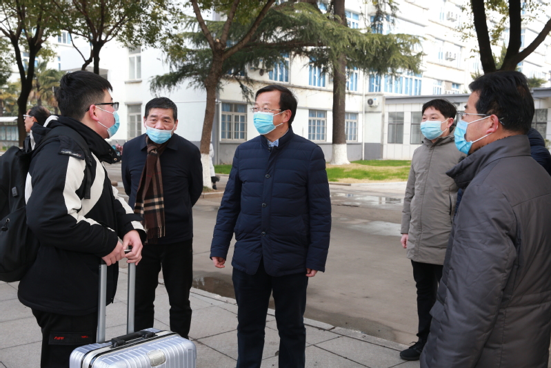 天将化雨舒清景,壬寅新岁校园春。时值雨水节气,学校分批次迎来2022年春季学期返校归来的学子。2月19日上午,校长周南平,校党委常委、副校长汤建,校党委常委、副校长谈镇分别深入梦溪校区和长山校区学生报到现场,亲切看望返校学子,慰问参加返校服务工作的师生志愿者。校办、学生处、安保处、研工部、后勤管理处、深蓝学院等有关部门负责同志参加检查。