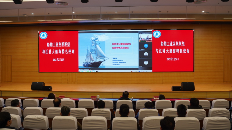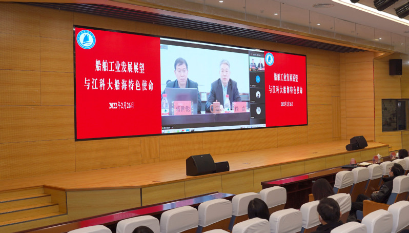 2月26日,中国船舶集团副总经济师、战略规划部主任马云翔应邀为我校作题为《船舶工业发展展望与江科大船海特色使命》的报告。中国船舶集团综合管理部主任程康,校党委书记葛世伦,校党委副书记、副校长景旭文在上海主会场出席会议,校领导许俊华、汤建、任南,党委常委、宣传部长周春燕及全体中层干部在长山校区图书馆B105报告厅同步观看了视频直播。