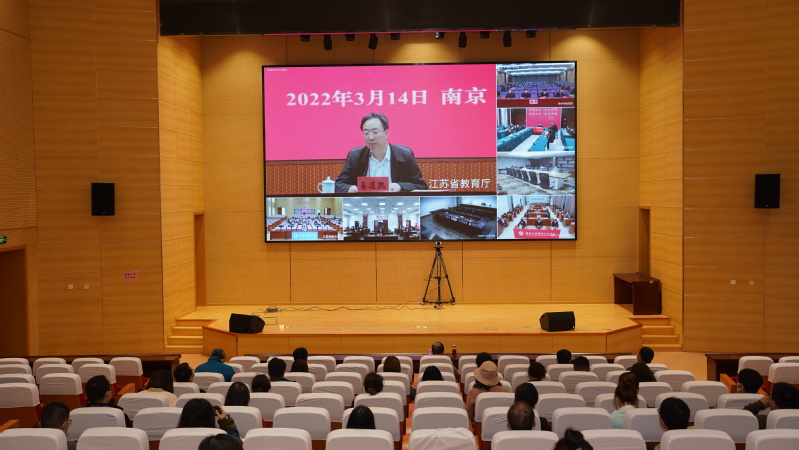 3月14日,省委教育工委、省教育厅召开全省教育系统传达学习2022年全国“两会”精神报告会。全国人大代表、省教育厅厅长、省委教育工委书记葛道凯主持会议,并对全省教育系统学习宣传贯彻“两会”精神进行部署。我校在长山校区行政楼100号报告厅、梦溪校区演讲厅分别设立分会场。全体校领导,中层正职干部,各学院党委副书记等参加会议。