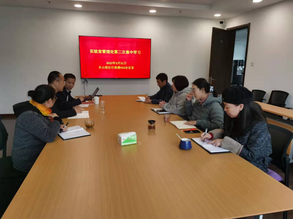 实验室管理处全体教师结合两会精神、江苏省教育工作会议精神对新时代中国高等教育提出的新要求,讨论和部署如何为我校博士、硕士学位授权点专项评估,国家教学成果奖申报等重点工作做好服务和保障。