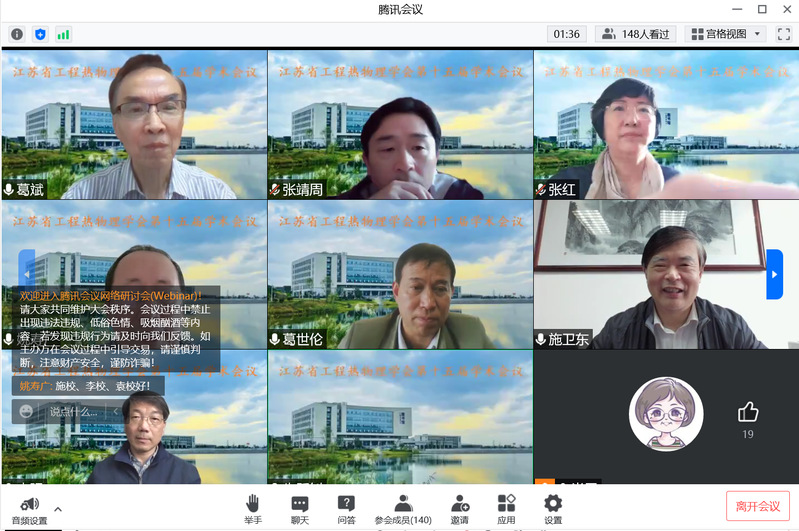 4月23日,江苏省工程热物理学会第十五届学术会议在江苏科技大学召开。大会由江苏省工程热物理学会主办,江苏科技大学能源与动力学院承办。学会理事长沈炯教授,学会监事会主席袁银南教授、学会副理事长朱跃钊教授,施卫东教授,张红教授,姚寿广教授及张靖周教授等出席大会,共300多位业内专家学者和师生通过线上方式参与本次大会。