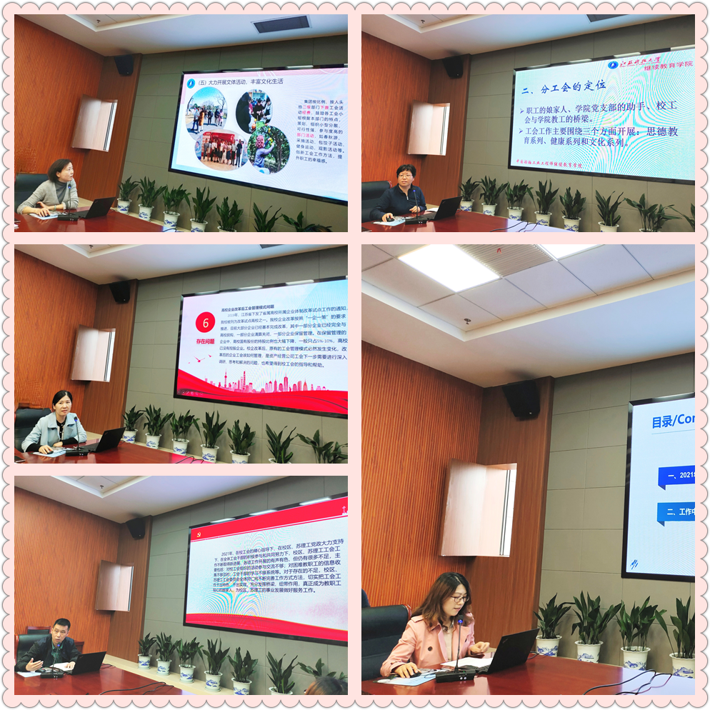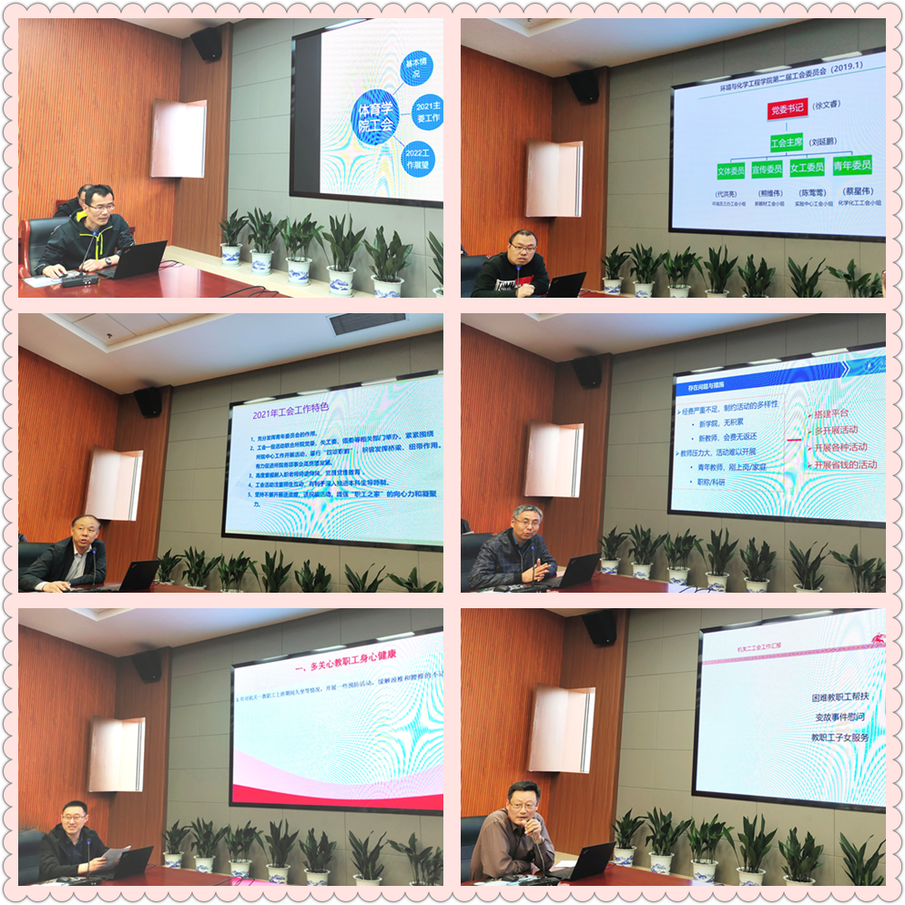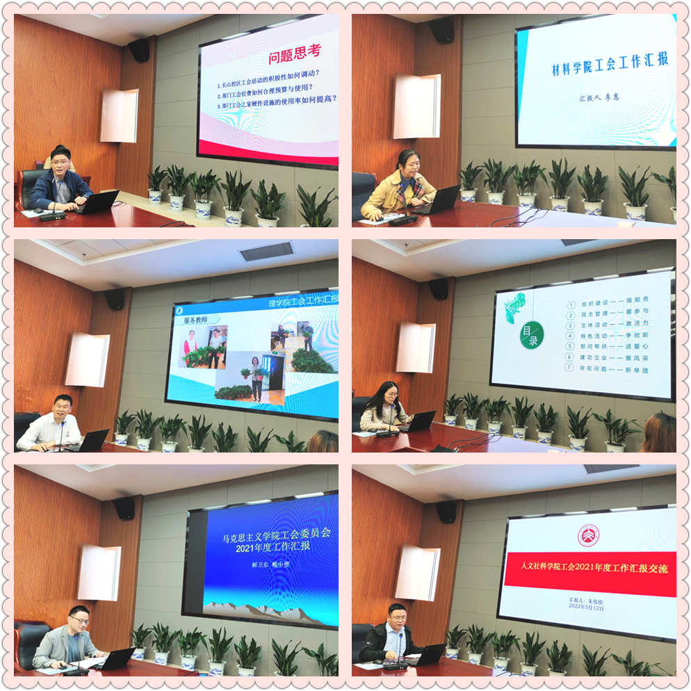 校工会常务副主席郭永强作了开场讲话,他表示,本次活动旨在加强我校工会干部交流工作、总结经验,提高基层工会的工作质量和水平,进一步推动我校二级工会工作有新作为新发展。随后各位工会主席图文并茂地汇报了2021年度二级教代会、工会小家建设、服务教师、文体活动、疫情防控形势下的工会作为等方面的工会工作。