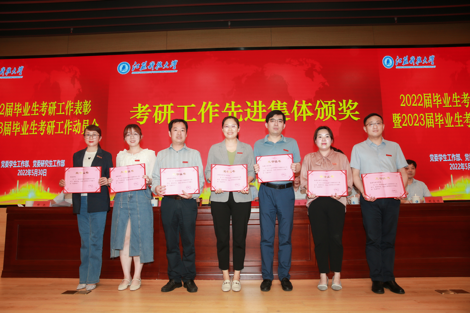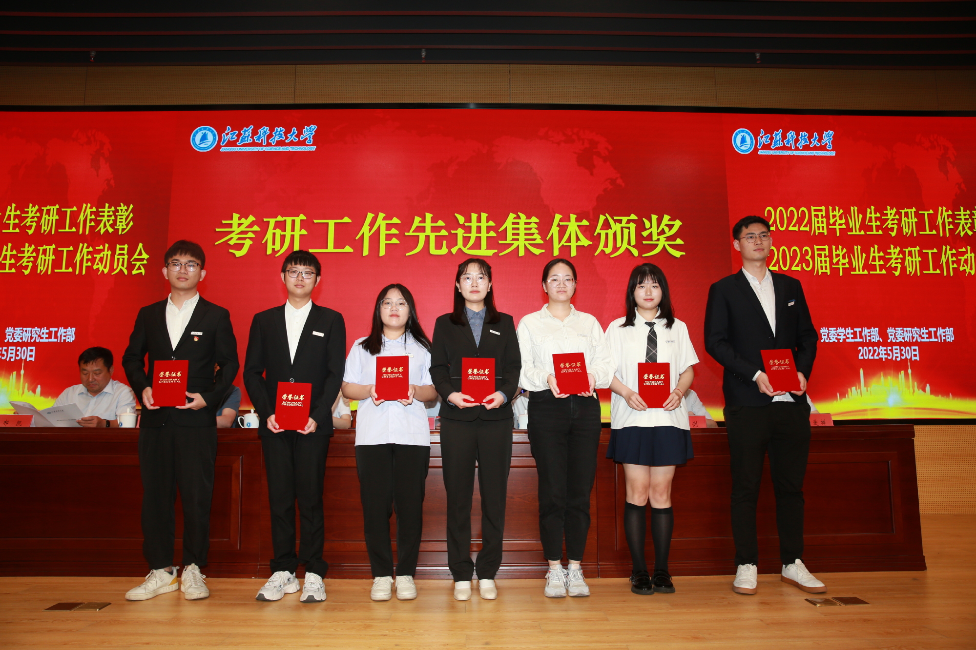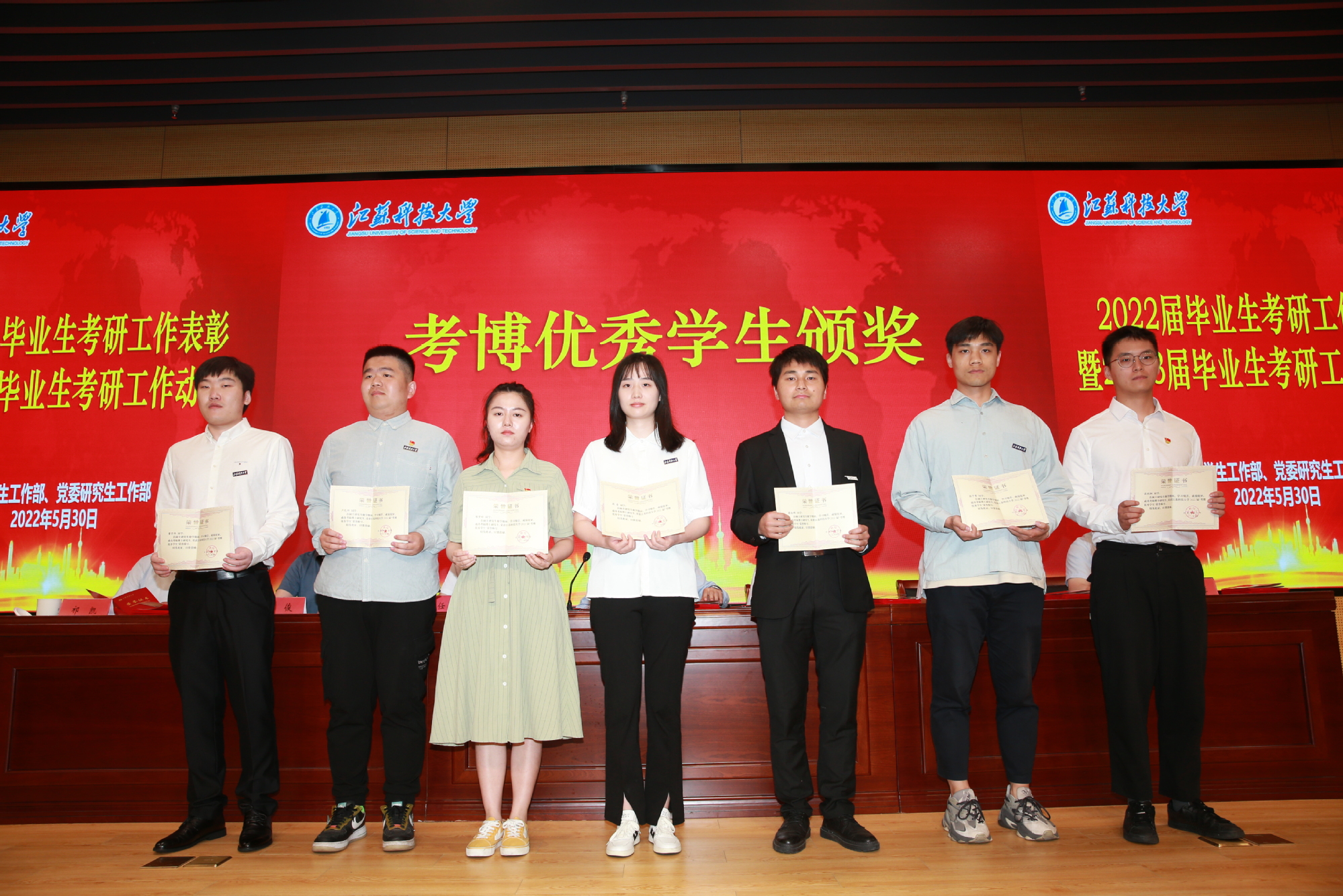 任南宣读了《关于表彰江苏科技大学2022届硕士研究生“考博优秀学生”的决定》《关于表彰江苏科技大学2022届本科毕业生考研优秀学生、优秀指导教师、先进集体的决定》,共有24名硕士研究生、1179名本科生、36名教师及37个先进集体(7个学院、10个班级、20个宿舍)受到表彰。