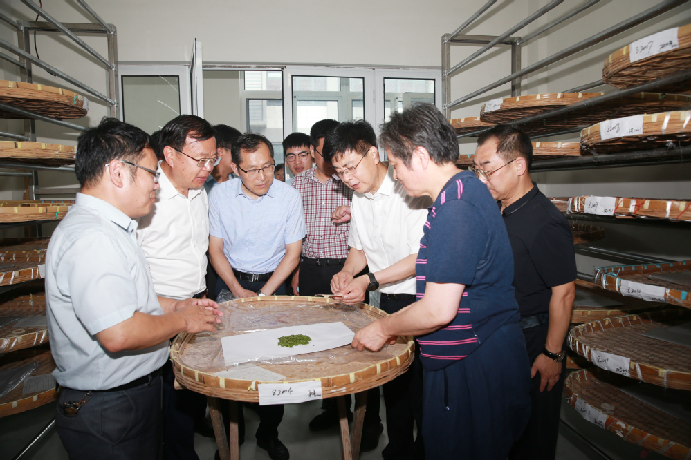 镇江市和我校相关部门负责人参加座谈会。座谈会前,巩海滨一行参观了长山校区蚕桑基地、部分实验室等。