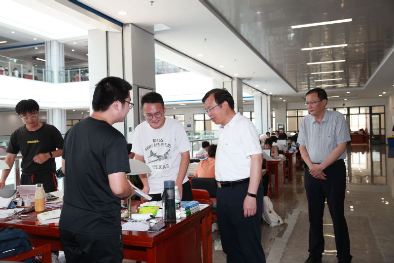 在图书馆,在馆人数近1000人,有研究生,也有即将进入大四的本科生,大家埋头苦学,补不足,学新知。“复习有什么困难?”“在图书馆学习有什么其它需求?”……周南平校长轻轻走近同学,问长问短,他表示,同学们假期留校复习考研或者深入学习,有了目标,要树立信心并付出努力,要坚持不懈,要保持平常心,更要有恒心,当然也要劳逸结合,要加强运动,保持健康的体魄。目前,学校条件有限,不能完全满足同学们的需求,但是也要力所能及地做好相关服务。学校的心与同学们的心在一起,希望同学们珍惜在校的奋斗时光,希望考研的同学努力不负期望,考上心仪的学校,也希望有更多学生报考江苏科技大学,希望在研究生的开学典礼上能再次见到大家。有同学现场提意见建议,相关职能部门现场办公,力求最快解决同学们的诉求。