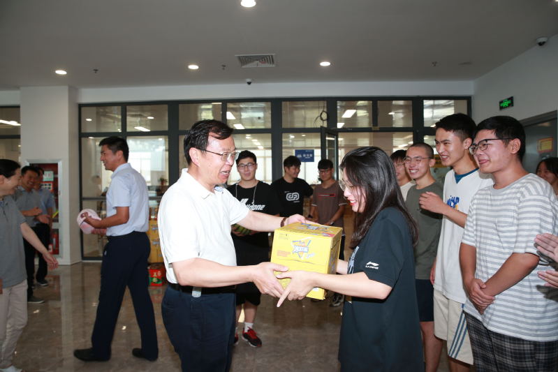 盛夏的长山校区,阳光炽烈,热浪滚滚。7月15日上午,校长周南平,副校长汤建、任南,党委常委、宣传部长周春燕,各职能部门负责人等冒酷暑走访慰问假期备赛、考研等坚守一线的师生员工,感谢他们的坚守,同时送去西瓜、饮料等慰问品,表达学校的关怀关心。
