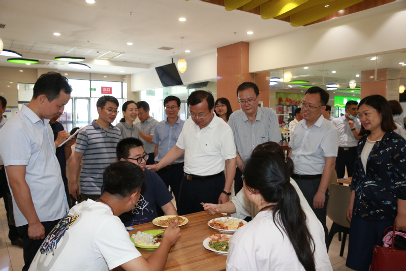 在东片区学生公寓10号组团,周南平校长一再强调,学生公寓管理十分辛苦,责任重大,天气炎热,学生会有各种各样的困难,公寓工作人员的服务一定要细心,要有耐心,多关心同学们的生活,及时处理学生的合理诉求。