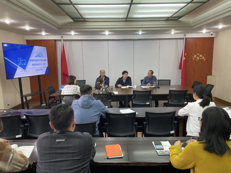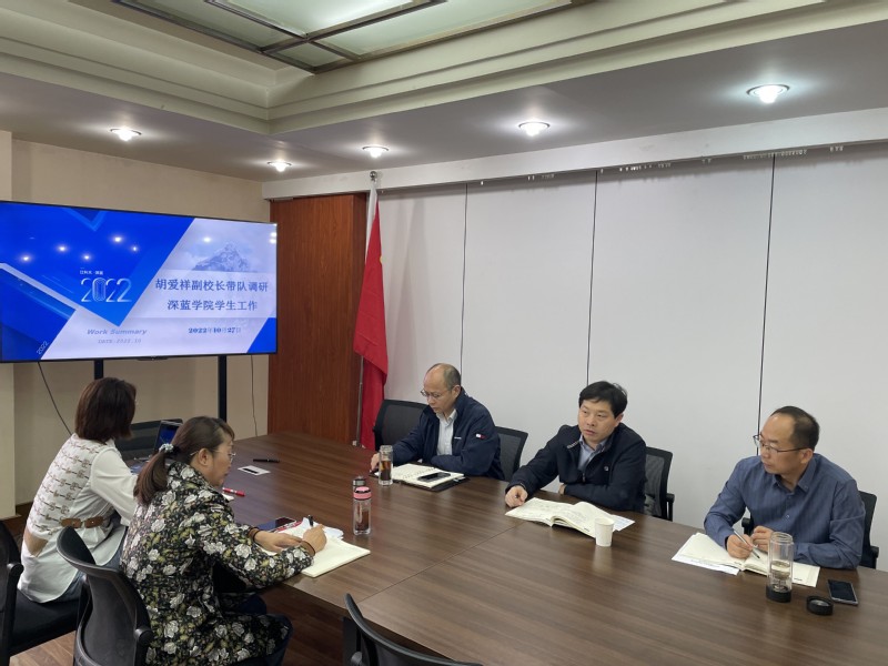 10月27日,校党委常委、副校长胡爱祥一行到深蓝学院调研指导学生工作,面对面与学院领导、全体辅导员互动交流。校学生处处长朱金陪同调研。学院党总支书记、院长杨建超主持调研座谈。
