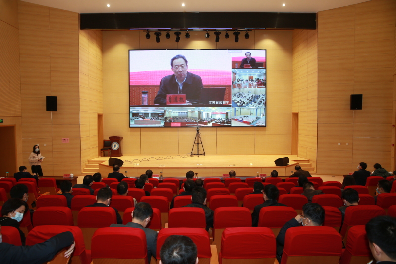 11月14日上午9:30,根据省委统一部署安排,省教育厅召开全省教育系统学习贯彻党的二十大精神省委宣讲团宣讲报告会。省委宣讲团成员,省教育厅厅长、党组书记、省委教育工委书记葛道凯作宣讲报告。会议采用线上线下相结合的方式。江苏科技大学分别在长山校区、张家港校区设分会场,校领导,党委常委,各部门单位主要负责人集中收听收看了宣讲会直播。