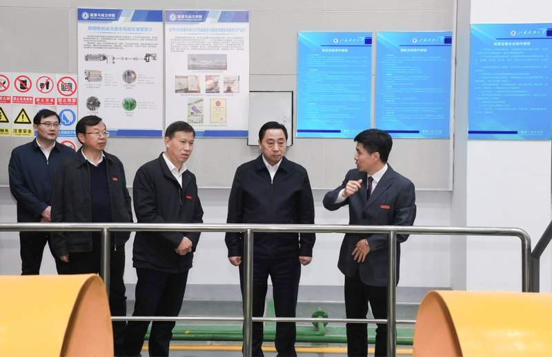 马明龙书记一行首先来到能源与动力学院重装实验楼,参观了船舱综合实训实验室、柴油机拆装实训室、发动机性能测试实验室、轮机综合机舱实验室和振动噪声实验室,观看了氢能源船舶演示、舰船风机盘管实验、消声减震实验等项目,对我校积极承担和参与国家重大科研项目的研发,在突破“卡脖子”技术问题等方面所作的努力予以肯定。马书记与在场师生开展互动交流,勉励学生为中国式现代化贡献青春力量。