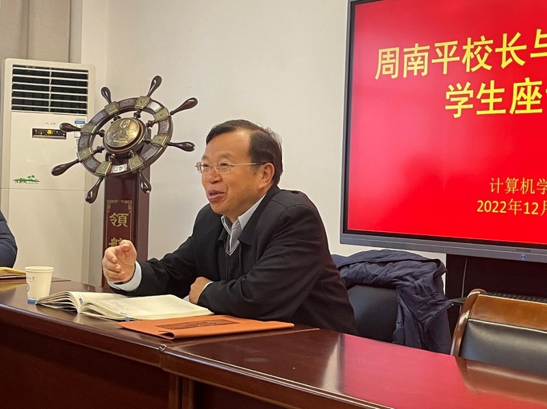 为深入学生,了解学生所思所想,12月9日上午,校长周南平走进计算机学院,走近学生,与2019级通信工程专业的学生代表展开面对面交流。计算机学院院长杨习贝、党委副书记吴健康、副院长史金龙参加交流会。交流会由学业导师徐泰华主持。