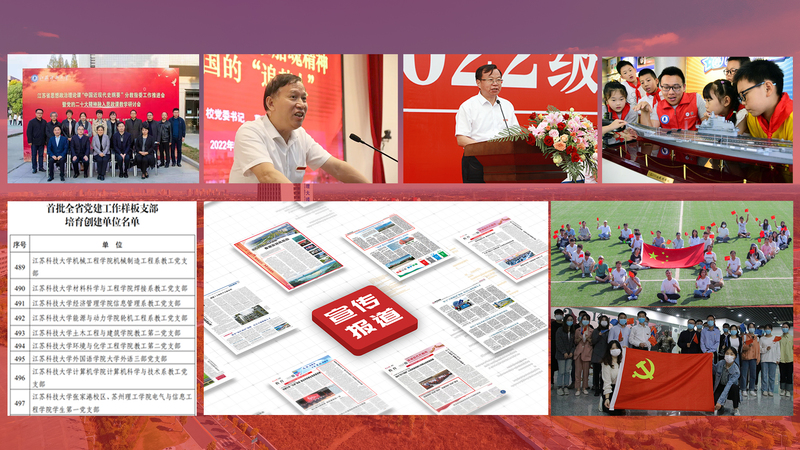 弘扬伟大建党精神,推动党史学习教育常态化长效化,“我为师生办实事”39件重点项目全部落实。党的领导坚强有力,基层党组织建设卓有成效,培育创建全国样板支部3个,全省标杆院系1个、样板支部9个。强化政治监督,全面加强党的纪律建设,新华日报介绍我校政治监督的做法。统一战线“同心圆”成效更加彰显。思想政治工作守正创新,书记、校长带头开讲“思政第一课”,获批江苏省高校示范马克思主义学院,马克思主义理论学科被遴选为江苏省“十四五”重点学科,《“兴船报国”文化滴灌式育人的实践探索》项目入选江苏高校思想政治工作质量提升工程,学校获批江苏省文明校园。全年省级以上媒体宣传报道发稿510篇,其中国家级268篇,大报大刊等深度报道42篇,头版或专版头条41篇,《江苏科技大学报》获江苏教育新闻一等奖。