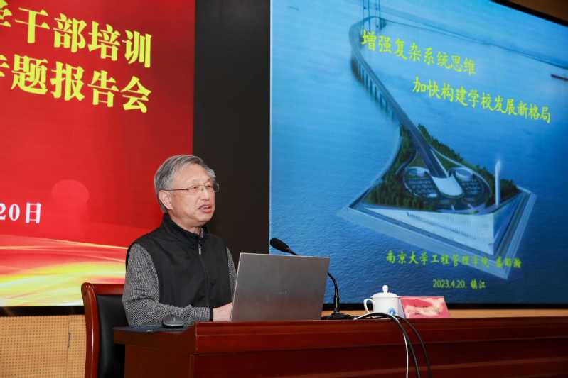 4月20日下午,江苏科技大学组织开展2023年干部培训第二阶段第五场报告会暨主题教育专题报告会。我国著名管理学家、国家有突出贡献专家、港珠澳大桥首席专家、南京大学工程管理学院盛昭瀚教授应邀做《增强复杂系统思维,加快构建学校发展新格局》专题讲座。