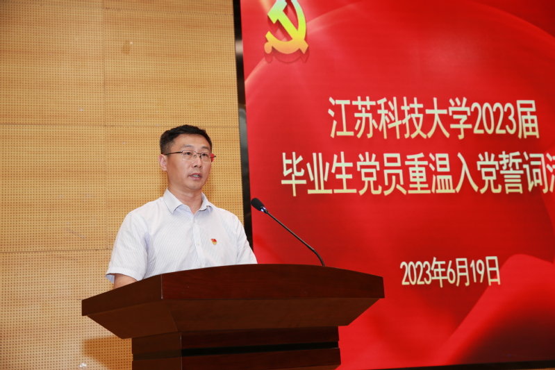 船海学院党委书记、院长张健代表教师党员发言。他希望广大毕业生党员继续牢记党员身份,勇敢拼搏,用自己的实际行动为母校增光添彩。