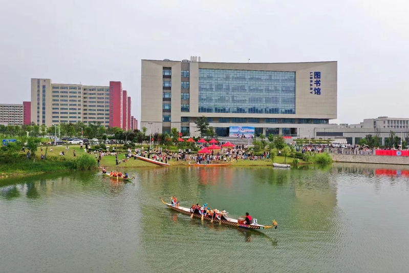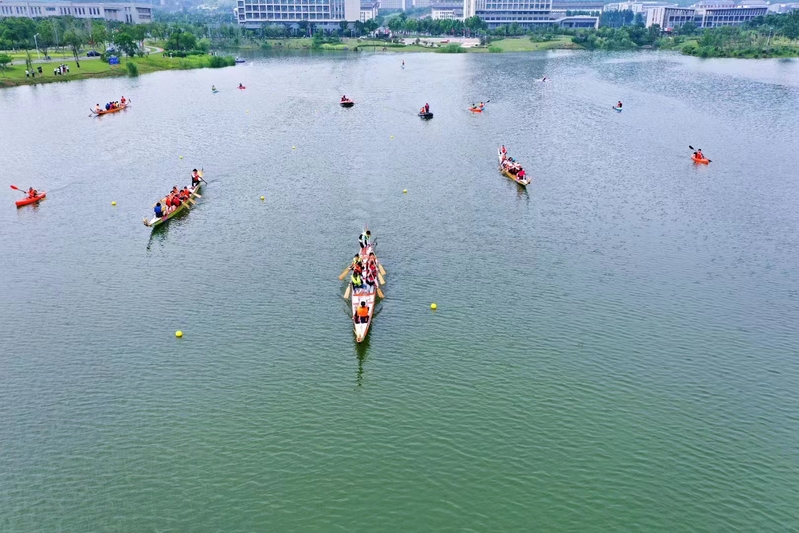 仲夏端午,龙舟竞渡。6月22日,江苏科技大学首届“龙游端午”龙舟师生联赛在长山校区海韵湖举行。